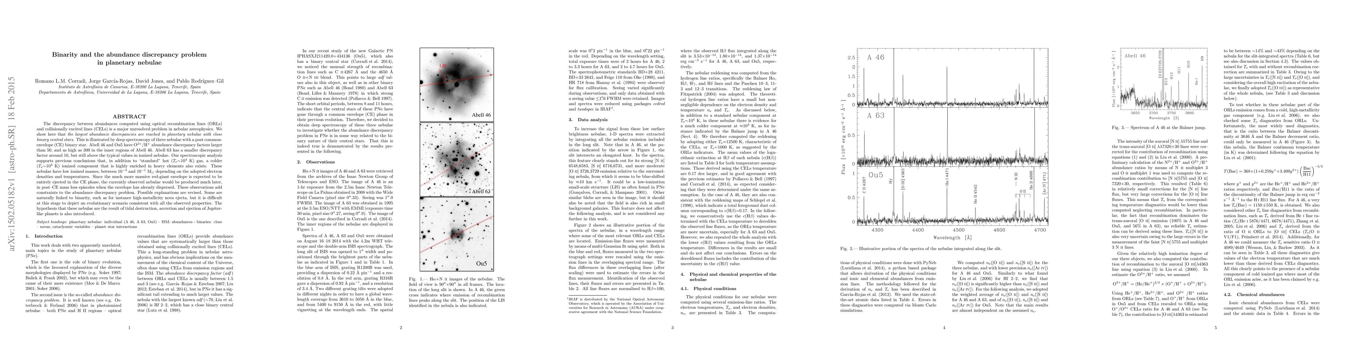 This paper investigates the abundance discrepancy problem in planetary nebulae, finding that nebulae with binary central stars exhibit significantly larger discrepancies between abundances derived from optical recombination lines and collisionally excited lines. Spectroscopic analysis of three such nebulae reveals highly enriched, cold ionized components, suggesting complex evolutionary scenarios linked to binarity and possibly the destruction of planetary bodies.