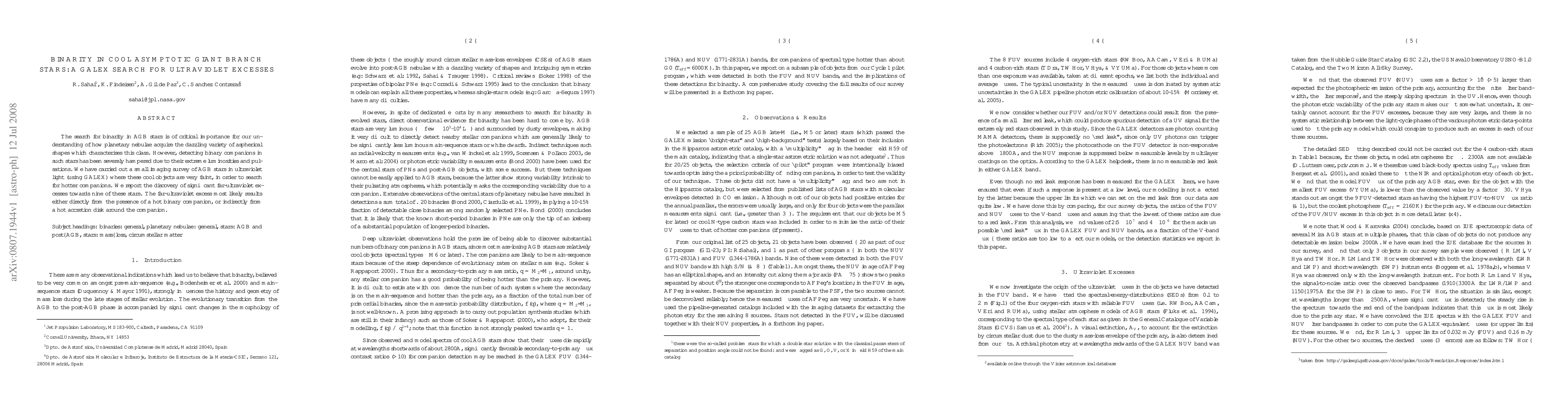 This study uses GALEX ultraviolet imaging to detect binarity in cool asymptotic giant branch (AGB) stars, finding significant ultraviolet excesses in nine stars likely due to hot binary companions or accretion disks, which may explain the diverse shapes of planetary nebulae.