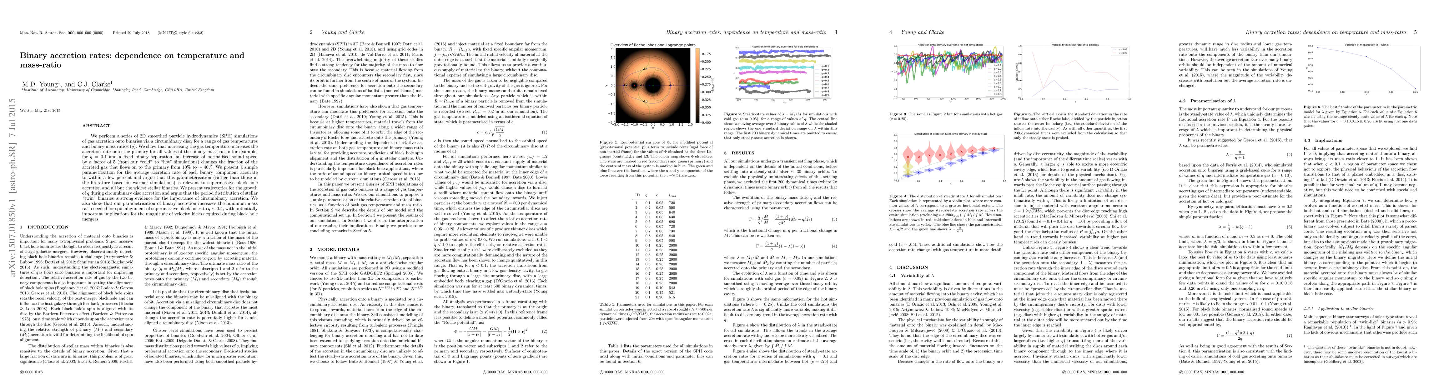 This paper uses 2D SPH simulations to study gas accretion onto binary systems via a circumbinary disc, finding that higher gas temperatures significantly increase accretion rates onto the primary component across various mass ratios. It proposes a new parametrisation for binary accretion rates, relevant for astrophysical contexts including supermassive black holes and stellar binaries.