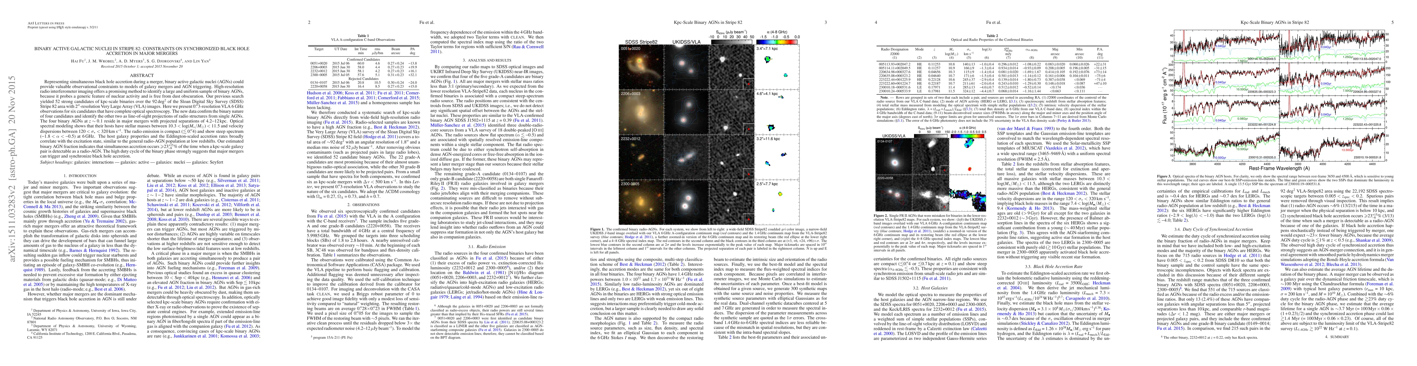 This study uses high-resolution radio interferometer imaging to identify binary active galactic nuclei (AGNs) in major mergers within the Stripe 82 area. Out of 52 candidates, 4 were confirmed as binary AGNs with kpc-scale separations, suggesting that major mergers can trigger and synchronize black hole accretion more than 23% of the time in detectable radio-AGN pairs.