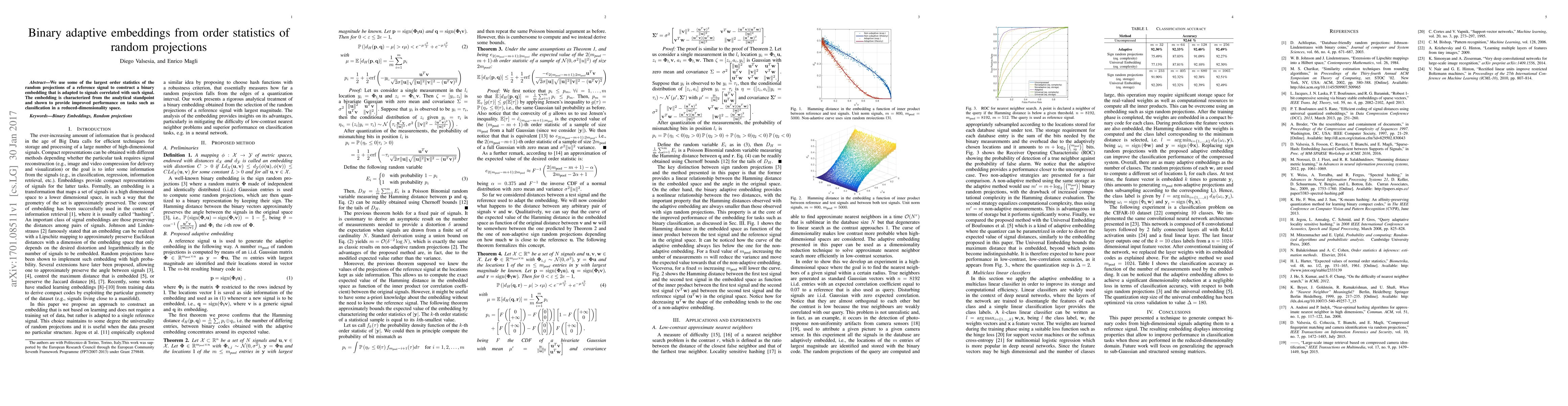 Researchers created a binary adaptive embedding using order statistics of random projections to improve performance on tasks like classification in reduced-dimensionality space.