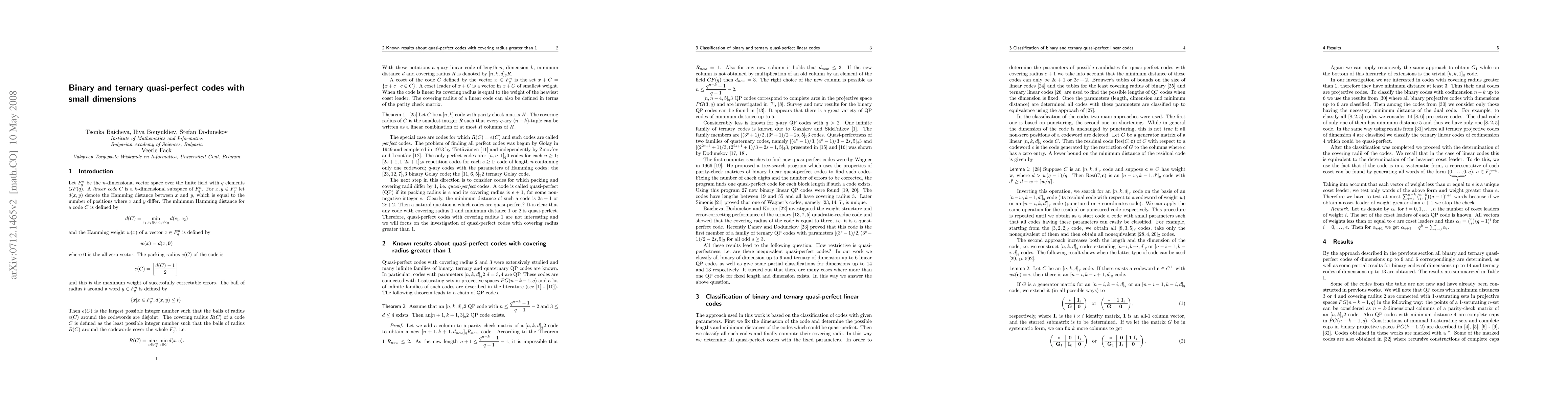 This paper systematically investigates and classifies quasi-perfect binary and ternary linear codes of small dimensions, presenting a complete list of known infinite families and sporadic examples, and achieving a full classification for dimensions up to 14 for binary and up to 13 for ternary QP codes.