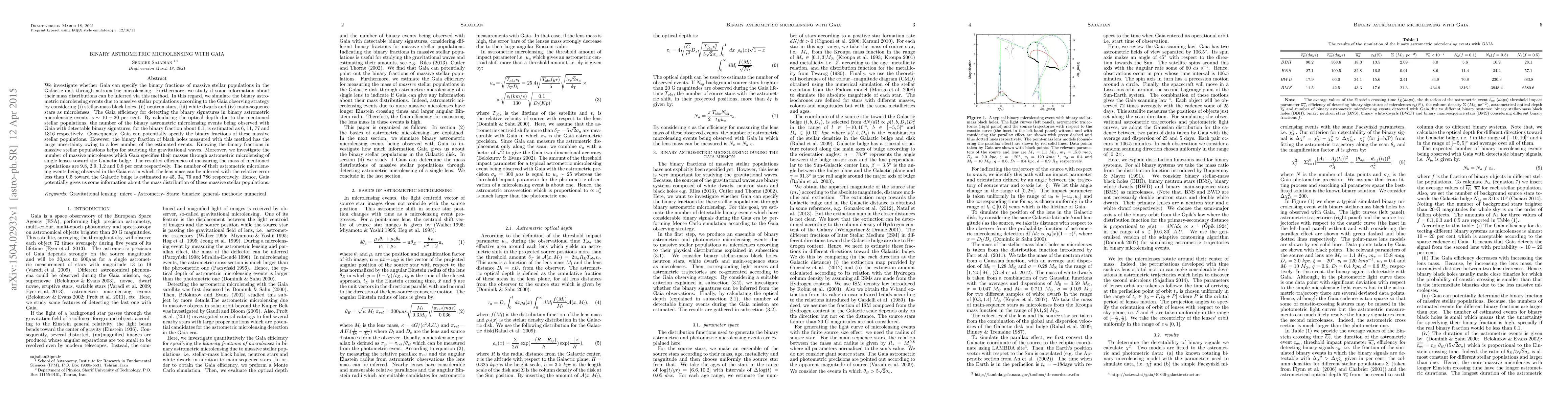 This paper explores the potential of Gaia to determine binary fractions and mass distributions of massive stellar populations via binary astrometric microlensing. It estimates that Gaia can detect around 6 to 1316 binary microlensing events per year, with significant uncertainties for black holes due to low event numbers.