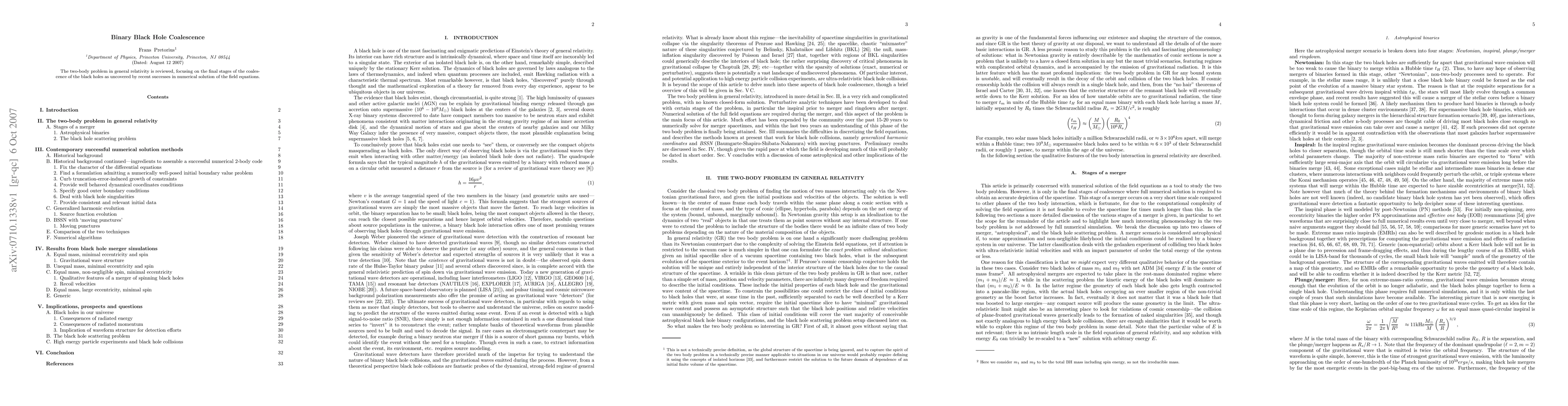 Researchers review recent numerical solutions to the two-body problem in general relativity, focusing on the final stages of black hole coalescence, revealing new insights into this complex astrophysical phenomenon.