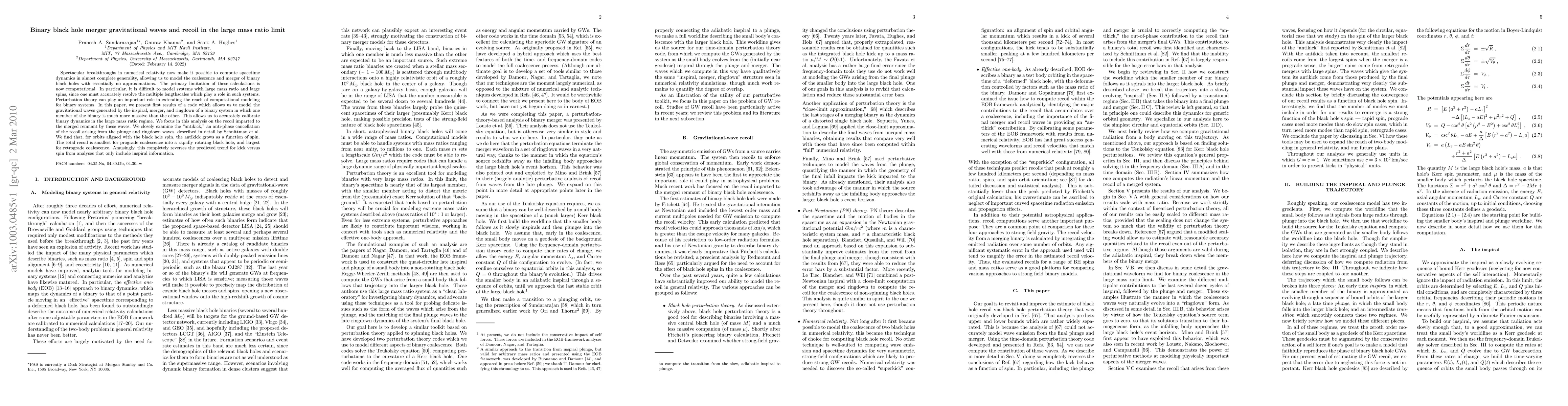 This paper presents a new computational model for binary black hole mergers with large mass ratios, focusing on gravitational wave dynamics and the recoil of the merged black hole. It reveals that the recoil, or "antikick," is smallest for prograde coalescence and largest for retrograde coalescence, contrary to predictions based on inspiral information alone.