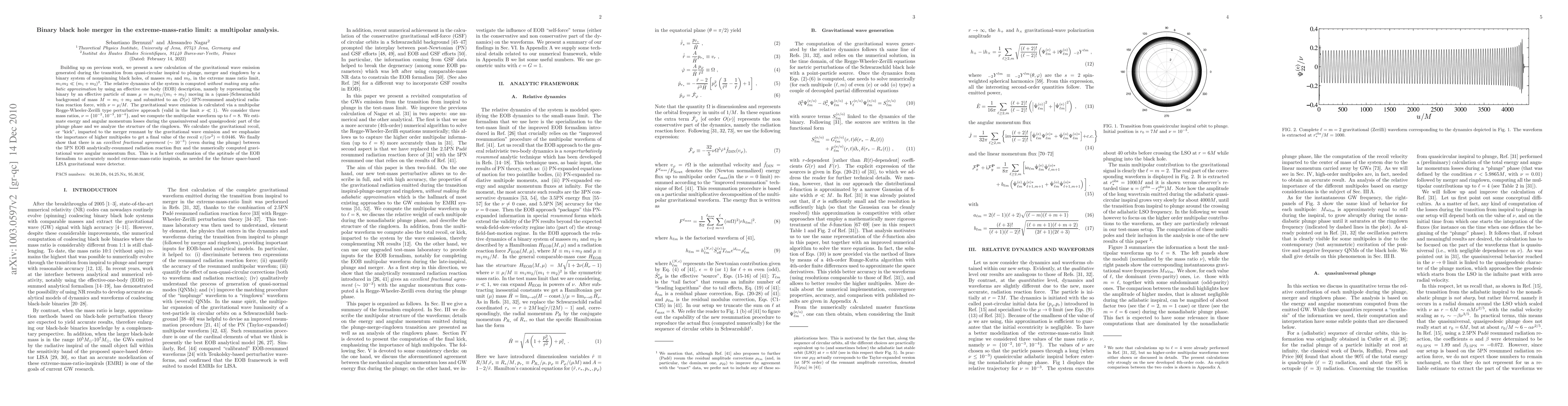 This paper presents a detailed calculation of gravitational wave emission from binary black hole mergers in the extreme-mass-ratio limit, using an effective one-body description and multipolar approach. It highlights the importance of higher multipoles in accurately estimating the gravitational recoil and confirms the EOB formalism's accuracy for future space-based gravitational wave detectors like LISA.