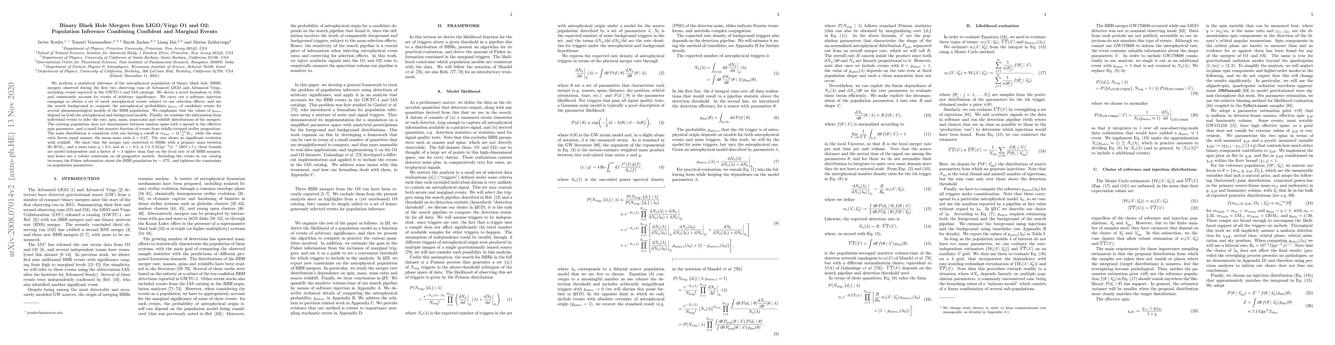 We perform a statistical inference of the astrophysical population of binary black hole (BBH) mergers observed during the first two observing runs of Advanced LIGO and Advanced Virgo, including events reported in the GWTC-1 and IAS catalogs. We derive a novel formalism to fully and consistently account for events of arbitrary significance. We carry out a software injection campaign to obtain a set of mock astrophysical events subject to our selection effects, and use the search background to compute the astrophysical probabilities $p_{\rm astro}$ of candidate events for several phenomenological models of the BBH population. We emphasize that the values of $p_{\rm astro}$ depend on both the astrophysical and background models. Finally, we combine the information from individual events to infer the rate, spin, mass, mass-ratio and redshift distributions of the mergers. The existing population does not discriminate between random spins with a spread in the effective spin parameter, and a small but nonzero fraction of events from tidally-torqued stellar progenitors. The mass distribution is consistent with one having a cutoff at $m_{\rm max} = 41^{+10}_{-5}\,\rm M_\odot$, while the mass ratio favors equal masses; the mean mass ratio $\bar q> 0.67$. The rate shows no significant evolution with redshift. We show that the merger rate restricted to BBHs with a primary mass between 20 and $30\, \rm M_\odot$, and a mass ratio $q > 0.5$, and at $z \sim 0.2$, is 1.5 to $5.3\,{\rm Gpc^{-3} yr^{-1}}$ (90\% c.l.); these bounds are model independent and a factor of $\sim 3$ tighter than that on the local rate of all BBH mergers, and hence are a robust constraint on all progenitor models. Including the events in our catalog increases the Fisher information about the BBH population by $\sim 47\%$, and tightens the constraints on population parameters.