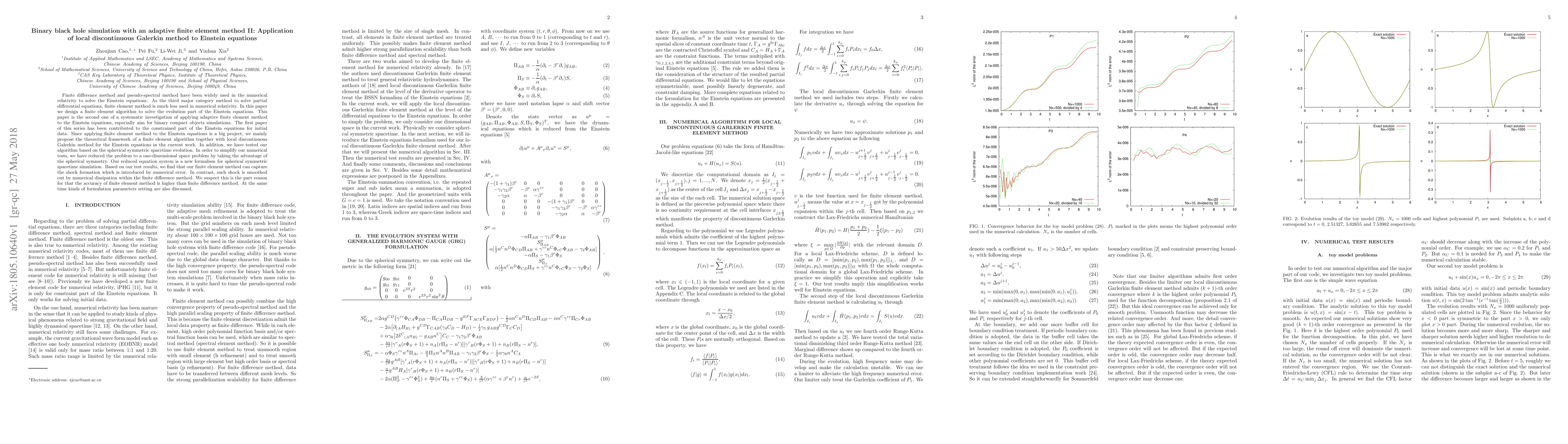 Finite difference method and pseudo-spectral method have been widely used in the numerical relativity to solve the Einstein equations. As the third major category method to solve partial differential equations, finite element method is much less used in numerical relativity. In this paper we design a finite element algorithm to solve the evolution part of the Einstein equations. This paper is the second one of a systematic investigation of applying adaptive finite element method to the Einstein equations, especially aim for binary compact objects simulations. The first paper of this series has been contributed to the constrained part of the Einstein equations for initial data. Since applying finite element method to the Einstein equations is a big project, we mainly propose the theoretical framework of a finite element algorithm together with local discontinuous Galerkin method for the Einstein equations in the current work. In addition, we have tested our algorithm based on the spherical symmetric spacetime evolution. In order to simplify our numerical tests, we have reduced the problem to a one-dimensional space problem by taking the advantage of the spherical symmetry. Our reduced equation system is a new formalism for spherical symmetric spacetime simulation. Based on our test results, we find that our finite element method can capture the shock formation which is introduced by numerical error. In contrast, such shock is smoothed out by numerical dissipation within the finite difference method. We suspect this is the part reason for that the accuracy of finite element method is higher than finite difference method. At the same time kinds of formulation parameters setting are also discussed.