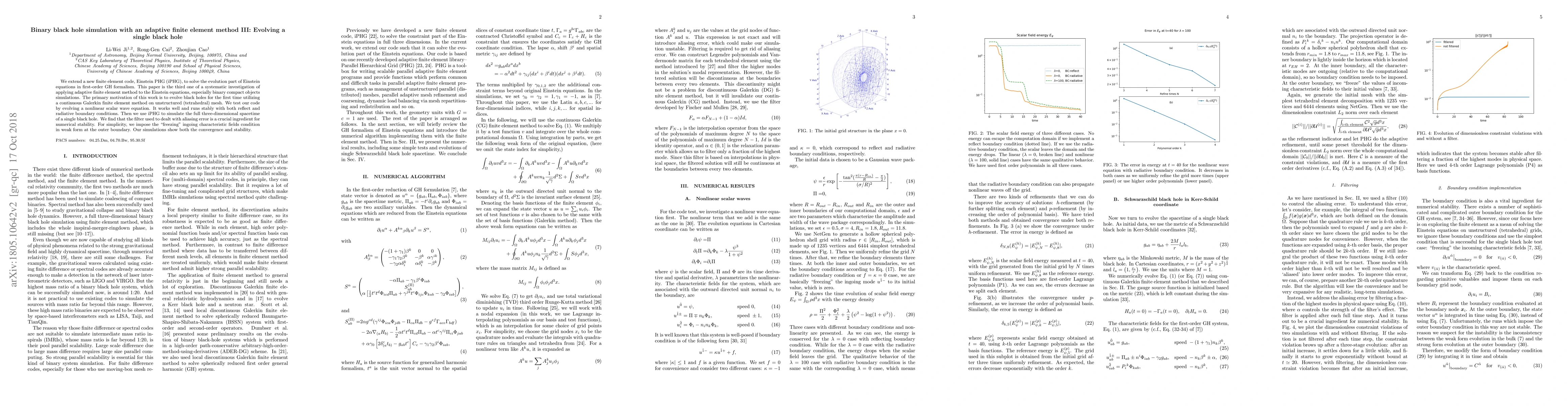 We extend a new finite element code, Einstein PHG (iPHG), to solve the evolution part of Einstein equations in first-order GH formalism. This paper is the third one of a systematic investigation of applying adaptive finite element method to the Einstein equations, especially binary compact objects simulations. The primary motivation of this work is to evolve black holes for the first time utilizing a continuous Galerkin finite element method on unstructured (tetrahedral) mesh. We test our code by evolving a nonlinear scalar wave equation. It works well and runs stably with both reflect and radiative boundary conditions. Then we use iPHG to simulate the full three-dimensional spacetime of a single black hole. We find that the filter used to dealt with aliasing error is a crucial ingredient for numerical stability. For simplicity, we impose the "freezing" ingoing characteristic fields condition in weak form at the outer boundary. Our simulations show both the convergence and stability.
