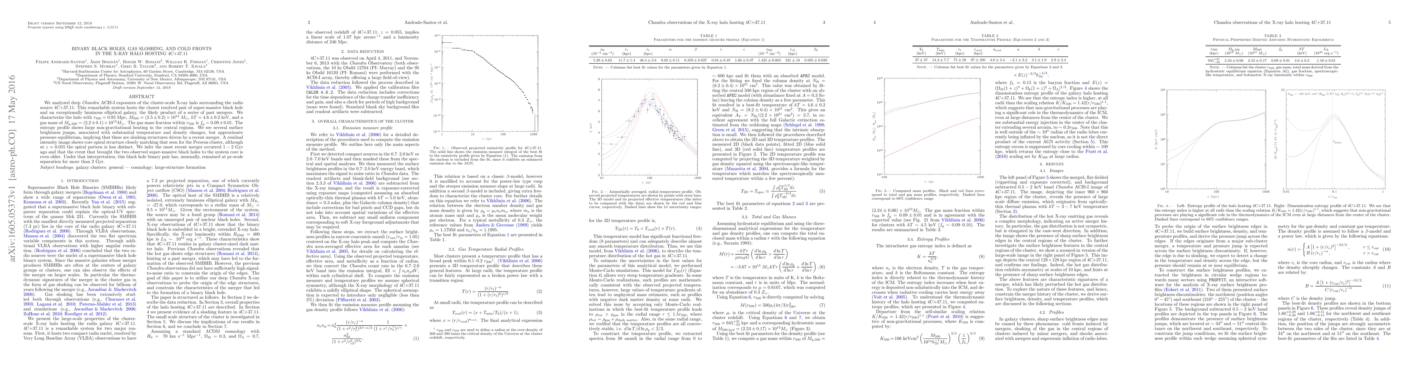 We analyzed deep $Chandra$ ACIS-I exposures of the cluster-scale X-ray halo surrounding the radio source 4C+37.11. This remarkable system hosts the closest resolved pair of super-massive black hole and an exceptionally luminous elliptical galaxy, the likely product of a series of past mergers. We characterize the halo with $r_{500} = 0.95$ Mpc, $M_{500} = (2.5 \pm 0.2) \times 10^{14} \ M_{\rm{\odot}}$, $ kT = 4.6\pm 0.2$ keV, and a gas mass of $M_{\rm g,500} = (2.2 \pm 0.1) \times 10^{13} M_\odot$. The gas mass fraction within $r_{500}$ is $f_{\rm g} = 0.09 \pm 0.01$. The entropy profile shows large non-gravitational heating in the central regions. We see several surface brightness jumps, associated with substantial temperature and density changes, but approximate pressure equilibrium, implying that these are sloshing structures driven by a recent merger. A residual intensity image shows core spiral structure closely matching that seen for the Perseus cluster, although at $z=0.055$ the spiral pattern is less distinct. We infer the most recent merger occurred $1-2$ Gyr ago and that the event that brought the two observed super-massive black holes to the system core is even older. Under that interpretation, this black hole binary pair has, unusually, remained at pc-scale separation for more than 2 Gyr.