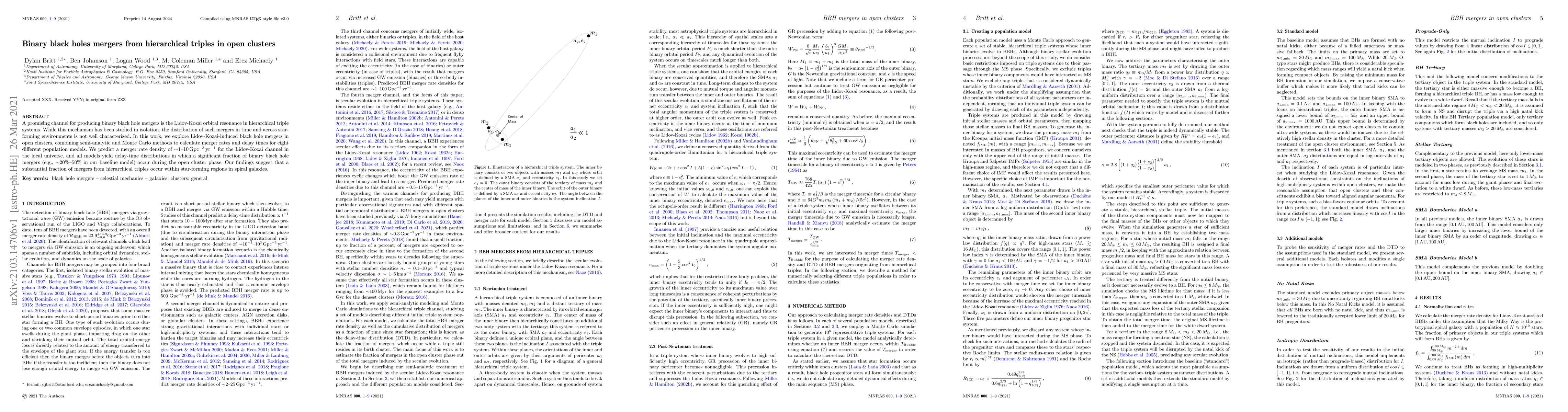 The paper presents a method for calculating merger rates and delay times for BBH mergers from hierarchical triples within open clusters, incorporating Lidov-Kozai resonance effects.