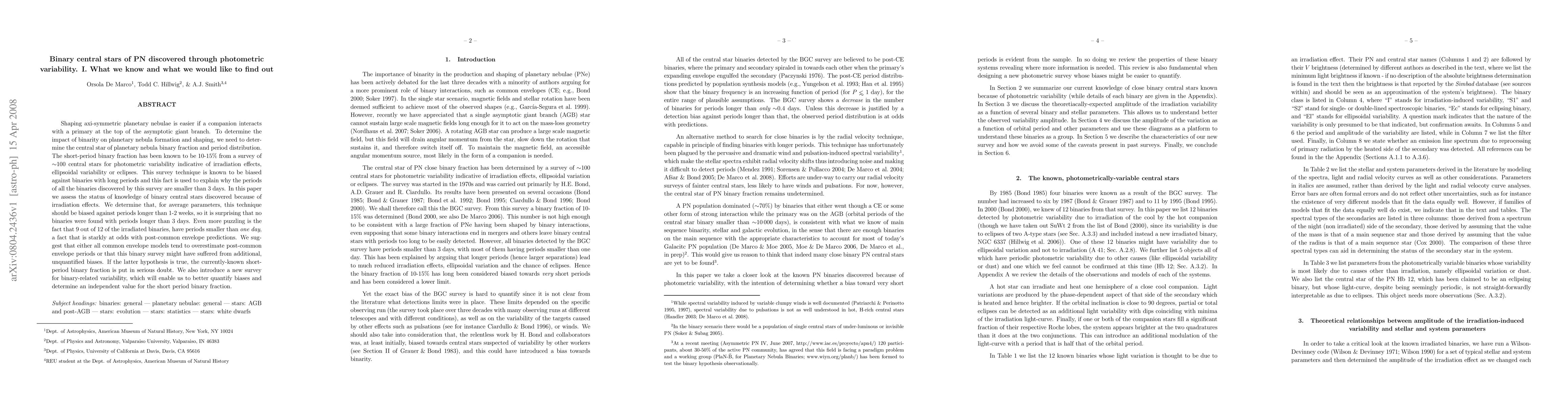 Shaping axi-symmetric planetary nebulae is easier if a companion interacts with a primary at the top of the asymptotic giant branch. To determine the impact of binarity on planetary nebula formation and shaping, we need to determine the central star of planetary nebula binary fraction and period distribution. The short-period binary fraction has been known to be 10-15% from a survey of ~100 central stars for photometric variability indicative of irradiation effects, ellipsoidal variability or eclipses. This survey technique is known to be biased against binaries with long periods and this fact is used to explain why the periods of all the binaries discovered by this survey are smaller than 3 days. In this paper we assess the status of knowledge of binary central stars discovered because of irradiation effects. We determine that, for average parameters, this technique should be biased against periods longer than 1-2 weeks, so it is surprising that no binaries were found with periods longer than 3 days. Even more puzzling is the fact that 9 out of 12 of the irradiated binaries, have periods smaller than one day, a fact that is starkly at odds with post-common envelope predictions. We suggest that either all common envelope models tend to overestimate post-common envelope periods or that this binary survey might have suffered from additional, unquantified biases. If the latter hypothesis is true, the currently-known short-period binary fraction is put in serious doubt. We also introduce a new survey for binary-related variability, which will enable us to better quantify biases and determine an independent value for the short period binary fraction.