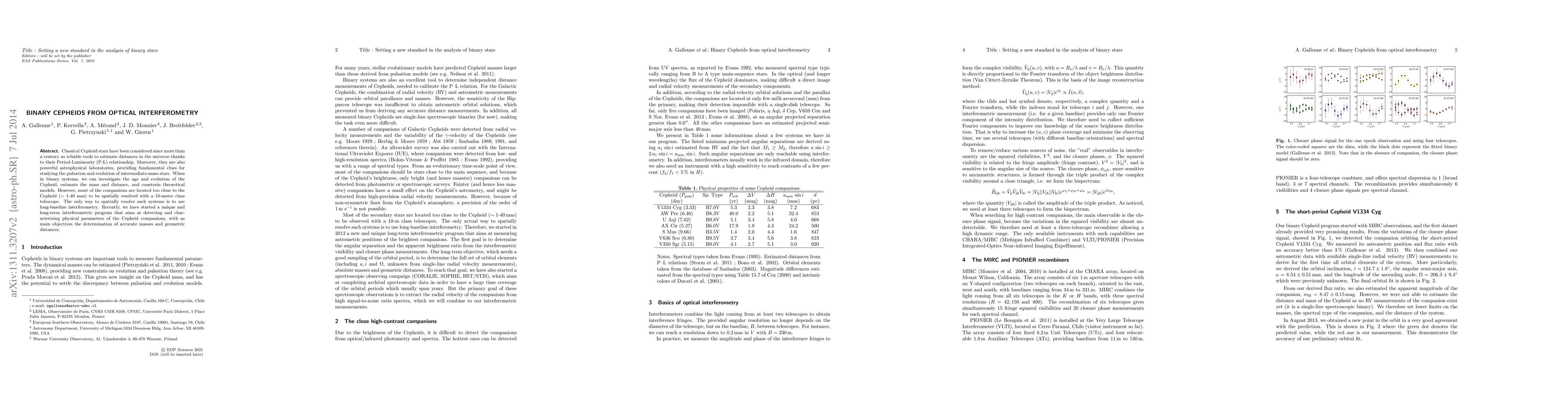 Classical Cepheid stars have been considered since more than a century as reliable tools to estimate distances in the universe thanks to their Period-Luminosity (P-L) relationship. Moreover, they are also powerful astrophysical laboratories, providing fundamental clues for studying the pulsation and evolution of intermediate-mass stars. When in binary systems, we can investigate the age and evolution of the Cepheid, estimate the mass and distance, and constrain theoretical models. However, most of the companions are located too close to the Cepheid (1-40 mas) to be spatially resolved with a 10-meter class telescope. The only way to spatially resolve such systems is to use long-baseline interferometry. Recently, we have started a unique and long-term interferometric program that aims at detecting and characterizing physical parameters of the Cepheid companions, with as main objectives the determination of accurate masses and geometric distances.