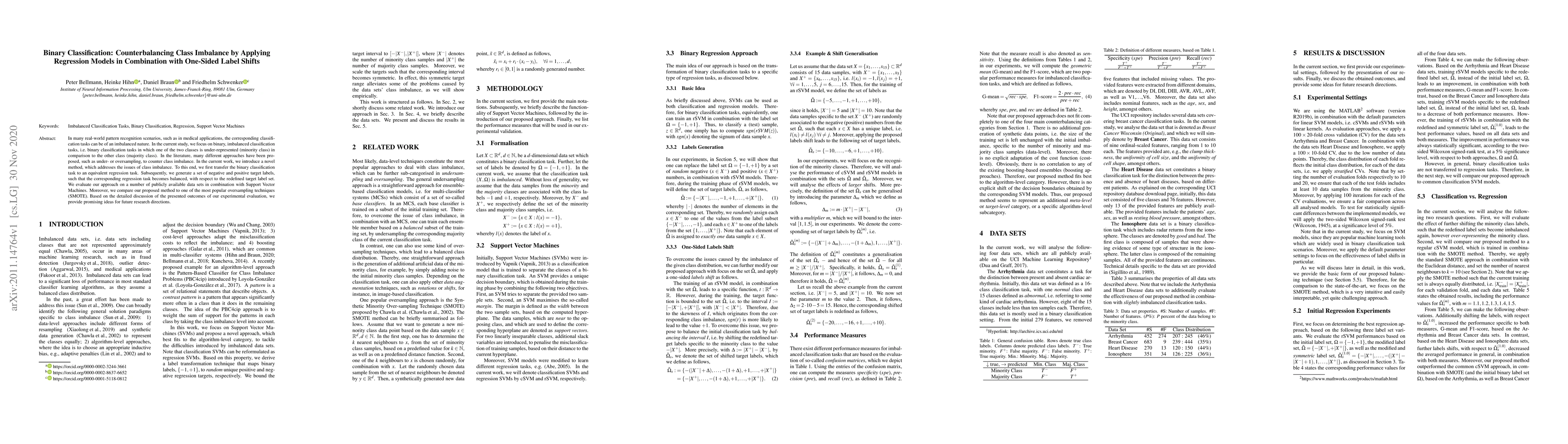 This paper proposes a novel method to counter class imbalance in binary classification by transforming the task into a balanced regression problem using one-sided label shifts, and evaluates it against popular oversampling techniques like SMOTE on various datasets. The results suggest potential improvements over existing methods.