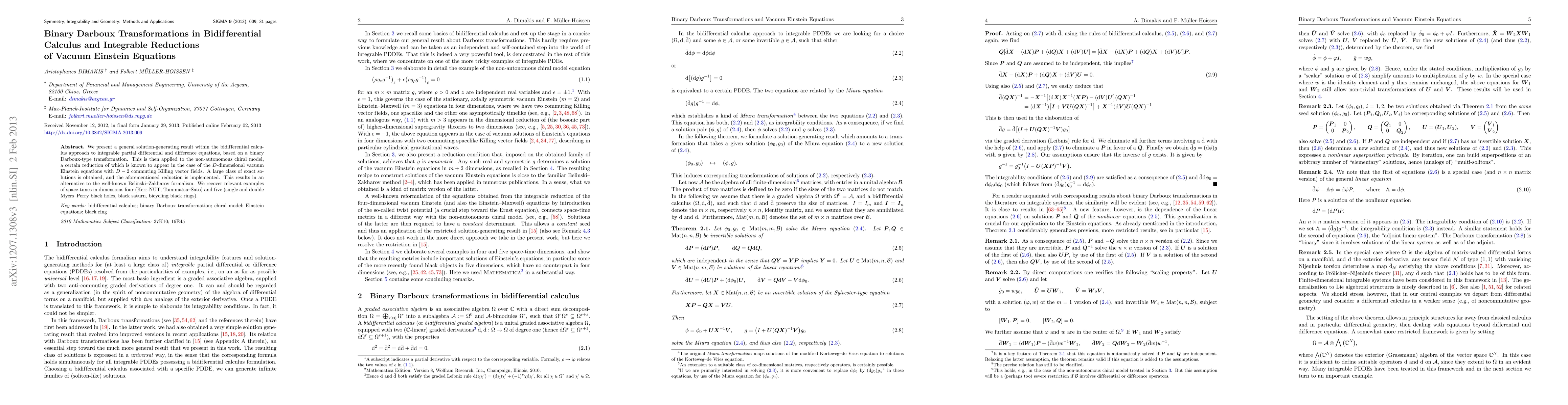 This paper introduces a binary Darboux transformation in bidifferential calculus to generate solutions for integrable partial differential equations, applying it to the non-autonomous chiral model. It provides an alternative method for solving the vacuum Einstein equations, yielding exact solutions for various space-time configurations.