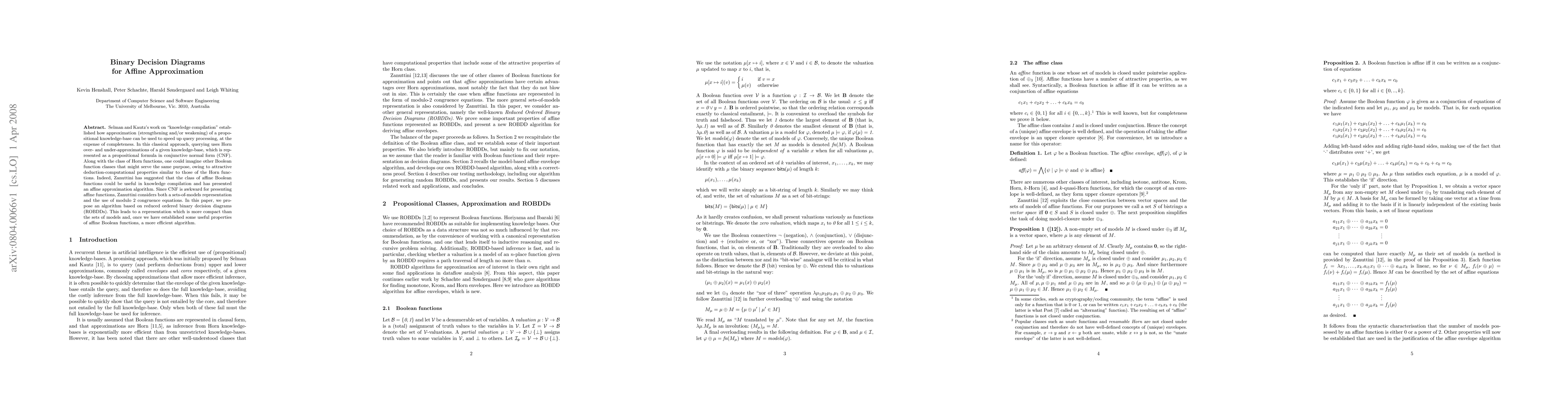 This paper proposes an algorithm using reduced ordered binary decision diagrams (ROBDDs) for affine approximation in knowledge compilation, offering a more compact and efficient representation compared to sets-of-models, leveraging properties of affine Boolean functions.