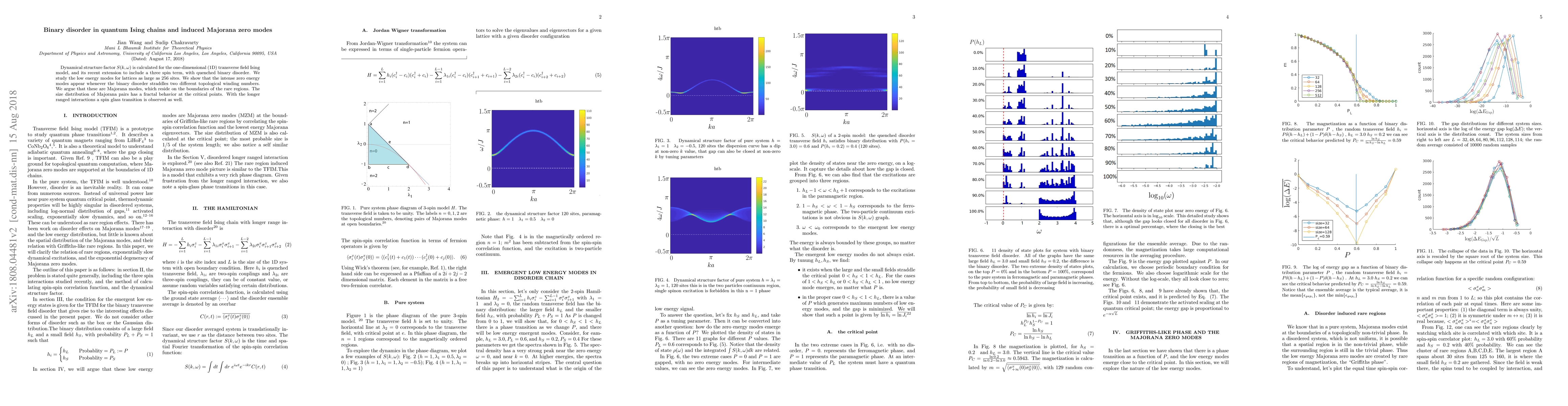 Dynamical structure factor (S(k,$\omega$)) is calculated for the one-dimensional (1D) transverse field Ising model, and its recent extension to include a three spin term, with quenched binary disorder. We study the low energy modes for lattices as large as 256 sites. We show that the intense zero energy modes appear whenever the binary disorder straddles two different winding numbers. We argue that these are Majorana modes, which reside on the boundaries of the rare regions. The size distribution of Majorana pairs has a fractal behavior at the critical points. With the longer ranged interactions a spin glass transition is observed as well.