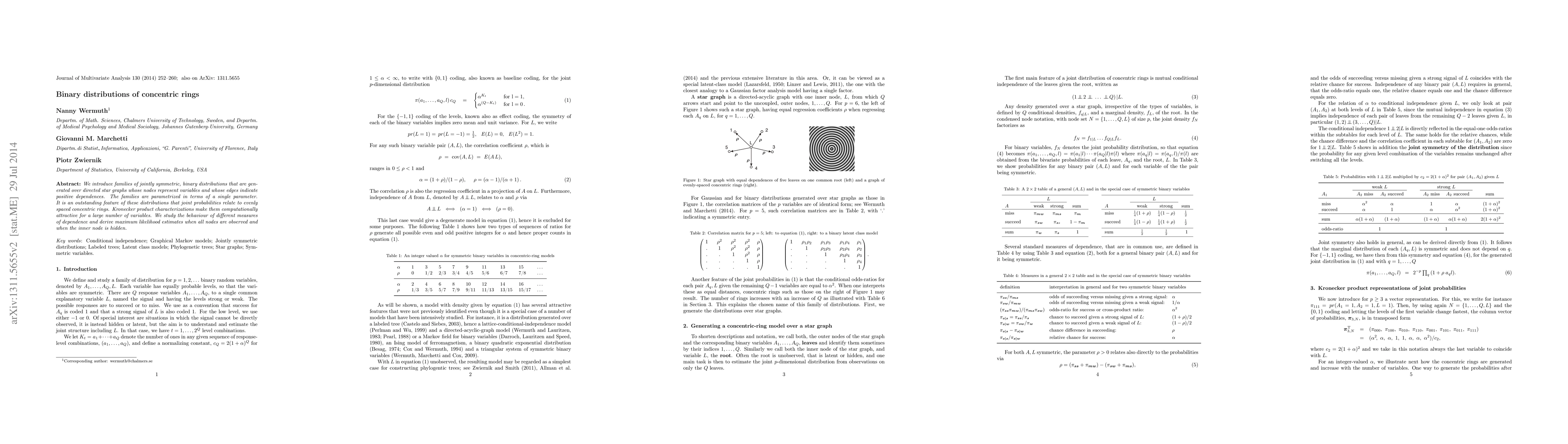 We introduce families of jointly symmetric, binary distributions that are generated over directed star graphs whose nodes represent variables and whose edges indicate positive dependences. The families are parametrized in terms of a single parameter. It is an outstanding feature of these distributions that joint probabilities relate to evenly-spaced concentric rings. Kronecker product characterizations make them computationally attractive for a large number of variables. We study the behaviour of different measures of dependence and derive maximum likelihood estimates when all nodes are observed and when the inner node is hidden.