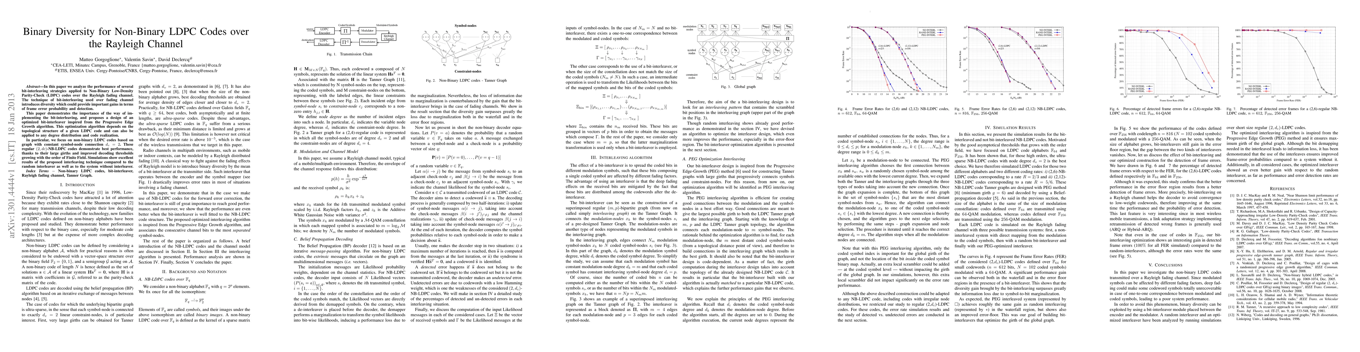 The research analyzes the performance of various bit-interleaving strategies for Non-Binary Low-Density Parity-Check (LDPC) codes over the Rayleigh fading channel, proposing an optimized bit-interleaver design based on the Progressive Edge Growth algorithm.