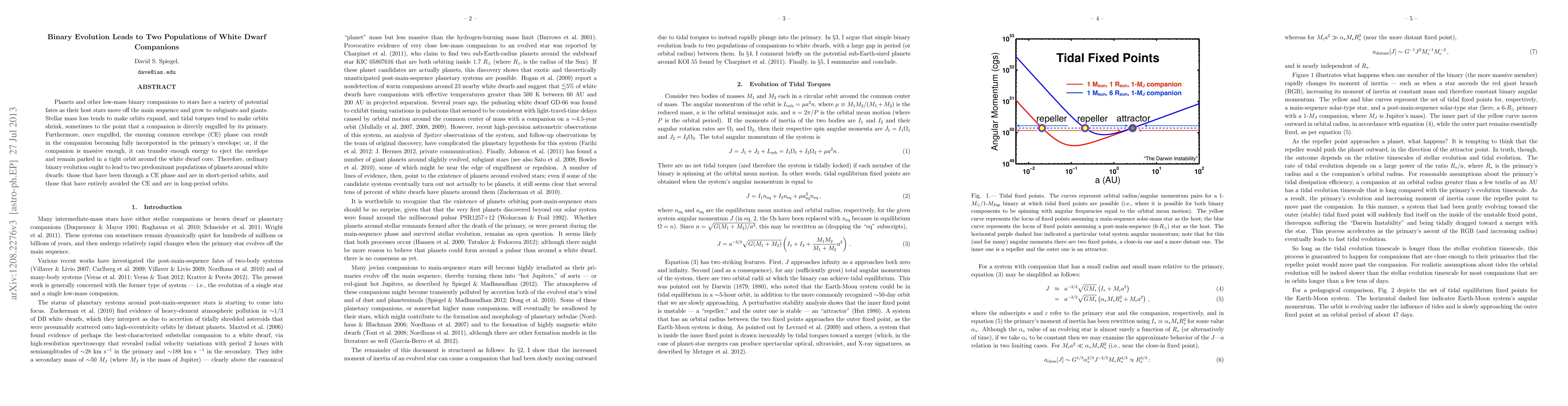 Planets and other low-mass binary companions to stars face a variety of potential fates as their host stars move off the main sequence and grow to subgiants and giants. Stellar mass loss tends to make orbits expand, and tidal torques tend to make orbits shrink, sometimes to the point that a companion is directly engulfed by its primary. Furthermore, once engulfed, the ensuing common envelope (CE) phase can result in the companion becoming fully incorporated in the primary's envelope; or, if the companion is massive enough, it can transfer enough energy to eject the envelope and remain parked in a tight orbit around the white dwarf core. Therefore, ordinary binary evolution ought to lead to two predominant populations of planets around white dwarfs: those that have been through a CE phase and are in short-period orbits, and those that have entirely avoided the CE and are in long-period orbits.