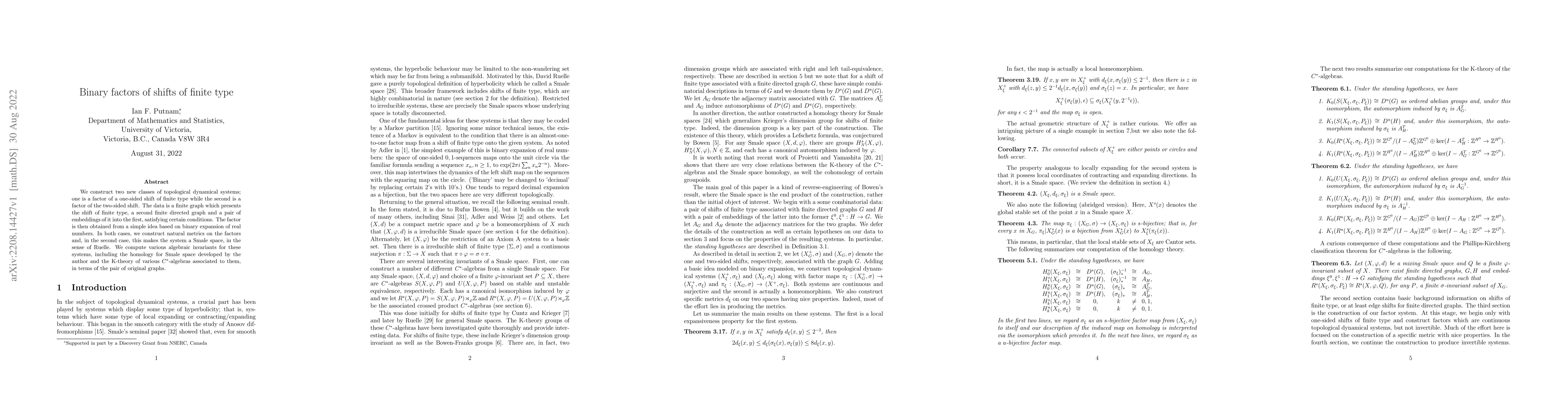 This paper constructs two new classes of topological dynamical systems derived from shifts of finite type, using finite graph data and binary expansions. It introduces natural metrics and computes algebraic invariants, including homology and K-theory, for these systems.