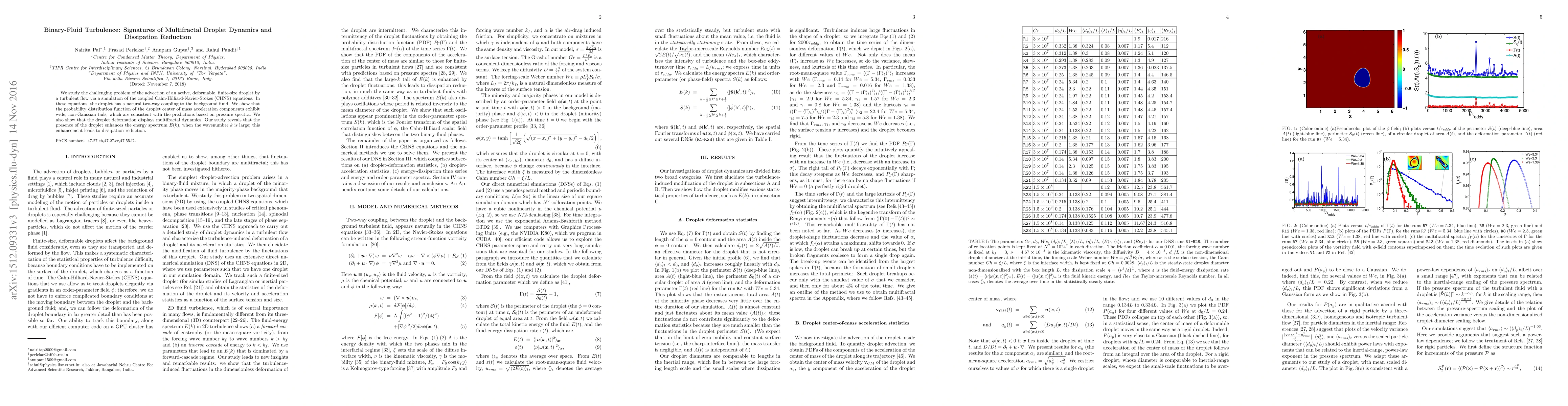 The paper uses direct numerical simulation to study turbulence in binary fluid mixtures, finding that a minority phase droplet exhibits multifractal dynamics and enhances the energy spectrum at large wavenumbers, leading to reduced dissipation.