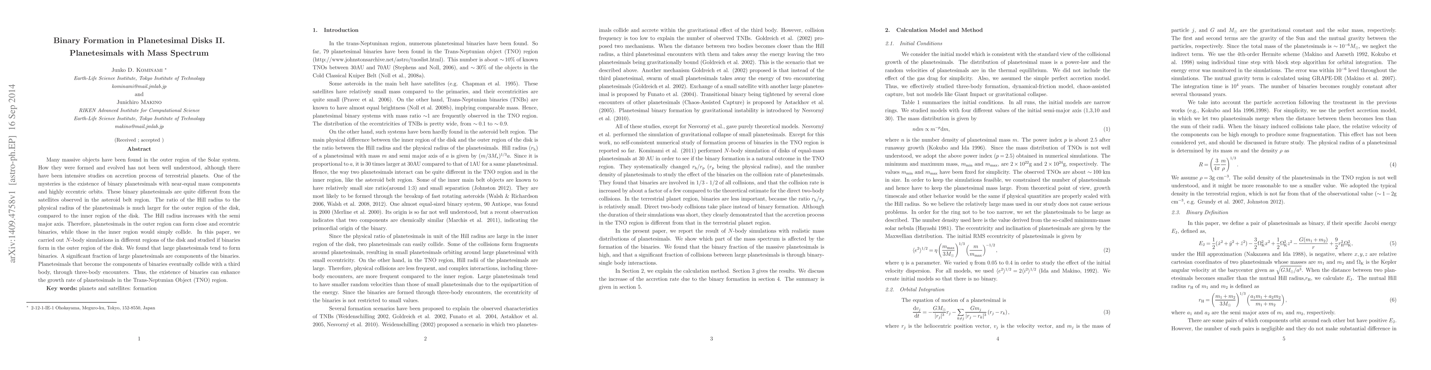 Many massive objects have been found in the outer region of the Solar system. How they were formed and evolved has not been well understood, although there have been intensive studies on accretion process of terrestrial planets. One of the mysteries is the existence of binary planetesimals with near-equal mass components and highly eccentric orbits. These binary planetesimals are quite different from the satellites observed in the asteroid belt region. The ratio of the Hill radius to the physical radius of the planetesimals is much larger for the outer region of the disk, compared to the inner region of the disk. The Hill radius increases with the semi major axis. Therefore, planetesimals in the outer region can form close and eccentric binaries, while those in the inner region would simply collide. In this paper, we carried out $N$-body simulations in different regions of the disk and studied if binaries form in the outer region of the disk. We found that large planetesimals tend to form binaries. A significant fraction of large planetesimals are components of the binaries. Planetesimals that become the components of binaries eventually collide with a third body, through three-body encounters. Thus, the existence of binaries can enhance the growth rate of planetesimals in the Trans-Neptunian Object (TNO) region.