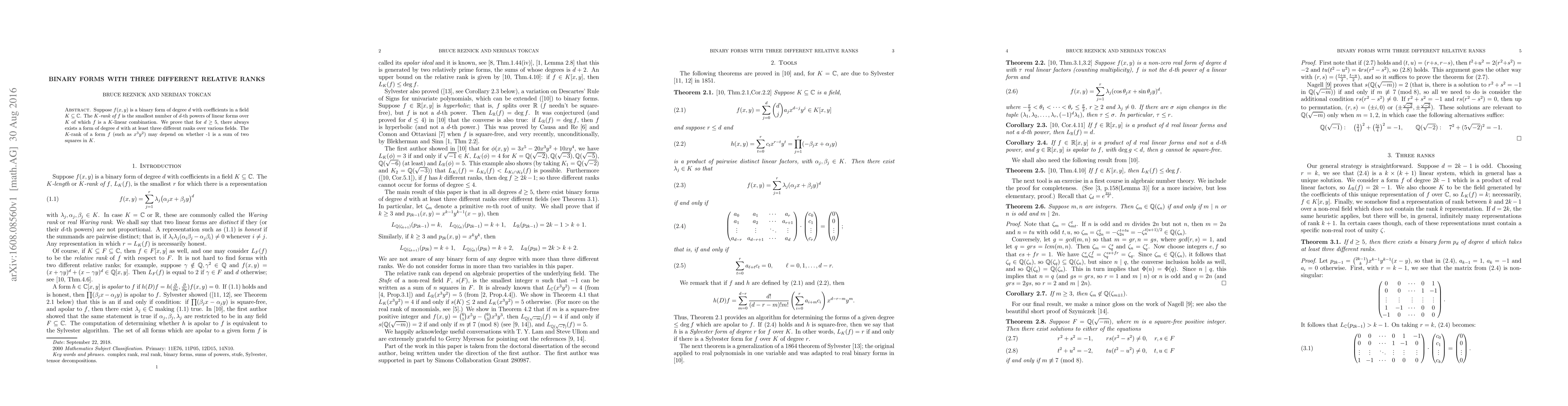 Suppose $f(x,y)$ is a binary form of degree $d$ with coefficients in a field $K \subseteq \mathbb C$. The $K$-rank of $f$ is the smallest number of $d$-th powers of linear forms over $K$ of which $f$ is a $K$-linear combination. We prove that for $d \ge 5$, there always exists a form of degree $d$ with at least three different ranks over various fields. The $K$-rank of a form $f$ (such as $x^3y^2$) may depend on whether -1 is a sum of two squares in $K$.