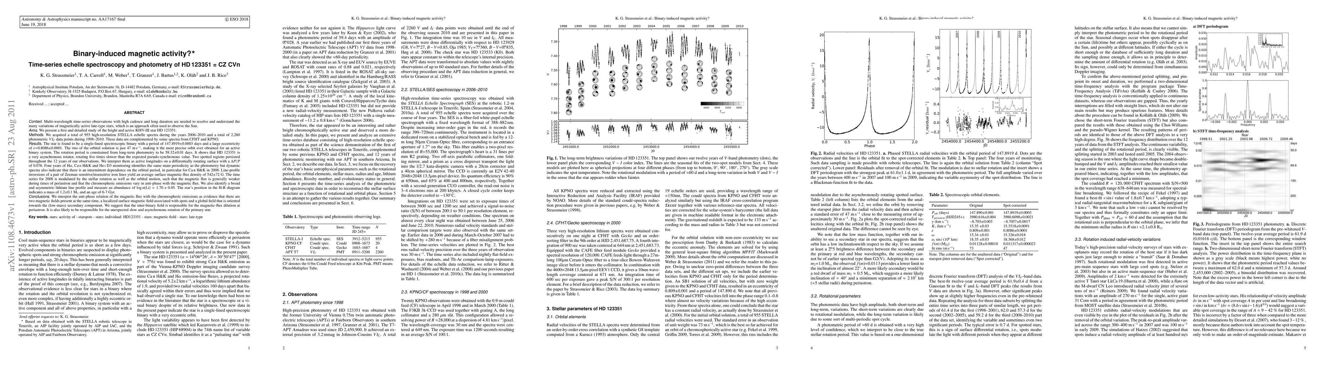 We present a first and detailed study of the bright and active K0IV-III star HD 123351. The star is found to be a single-lined spectroscopic binary with a period of 147.8919+-0.0003 days and a large eccentricity of e=0.8086+-0.0001. The rms of the orbital solution is just 47 m/s, making it the most precise orbit ever obtained for an active binary system. The rotation period is constrained from long-term photometry to be 58.32+-0.01 days. It shows that HD 123351 is a very asynchronous rotator, rotating five times slower than the expected pseudo-synchronous value. Two spotted regions persisted throughout the 12 years of our observations. Four years of Halpha, CaII H&K and HeI D3 monitoring identifies the same main periodicity as the photometry but dynamic spectra also indicate that there is an intermittent dependence on the orbital period, in particular for Ca ii H&K in 2008. Line-profile inversions of a pair of Zeeman sensitive/insensitive iron lines yield an average surface magnetic-flux density of 542+-72 G. The time series for 2008 is modulated by the stellar rotation as well as the orbital motion, such that the magnetic flux is generally weaker during times of periastron and that the chromospheric emissions vary in anti-phase with the magnetic flux. We also identify a broad and asymmetric lithium line profile and measure an abundance of log n(Li) = 1.70+-0.05. The star's position in the H-R diagram indicates a mass of 1.2+-0.1 Msun and an age of 6-7 Gyr. We interpret the anti-phase relation of the magnetic flux with the chromospheric emissions as evidence that there are two magnetic fields present at the same time, a localized surface magnetic field associated with spots and a global field that is oriented towards the (low-mass) secondary component.