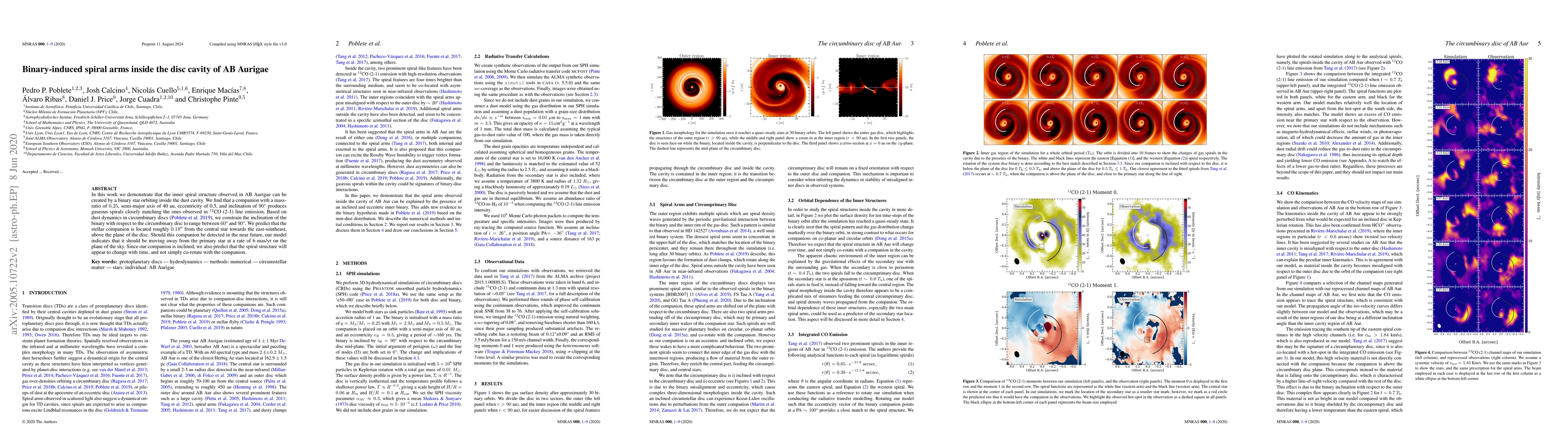 A binary star system can create spiral arms in a dust cavity, matching observations of AB Aurigae, with predicted detection locations and movement rates.