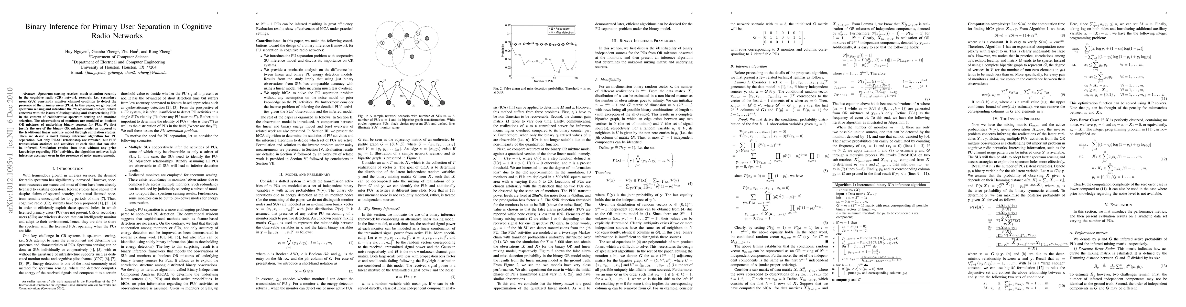 Spectrum sensing receives much attention recently in the cognitive radio (CR) network research, i.e., secondary users (SUs) constantly monitor channel condition to detect the presence of the primary users (PUs). In this paper, we go beyond spectrum sensing and introduce the PU separation problem, which concerns with the issues of distinguishing and characterizing PUs in the context of collaborative spectrum sensing and monitor selection. The observations of monitors are modeled as boolean OR mixtures of underlying binary sources for PUs. We first justify the use of the binary OR mixture model as opposed to the traditional linear mixture model through simulation studies. Then we devise a novel binary inference algorithm for PU separation. Not only PU-SU relationship are revealed, but PUs' transmission statistics and activities at each time slot can also be inferred. Simulation results show that without any prior knowledge regarding PUs' activities, the algorithm achieves high inference accuracy even in the presence of noisy measurements.