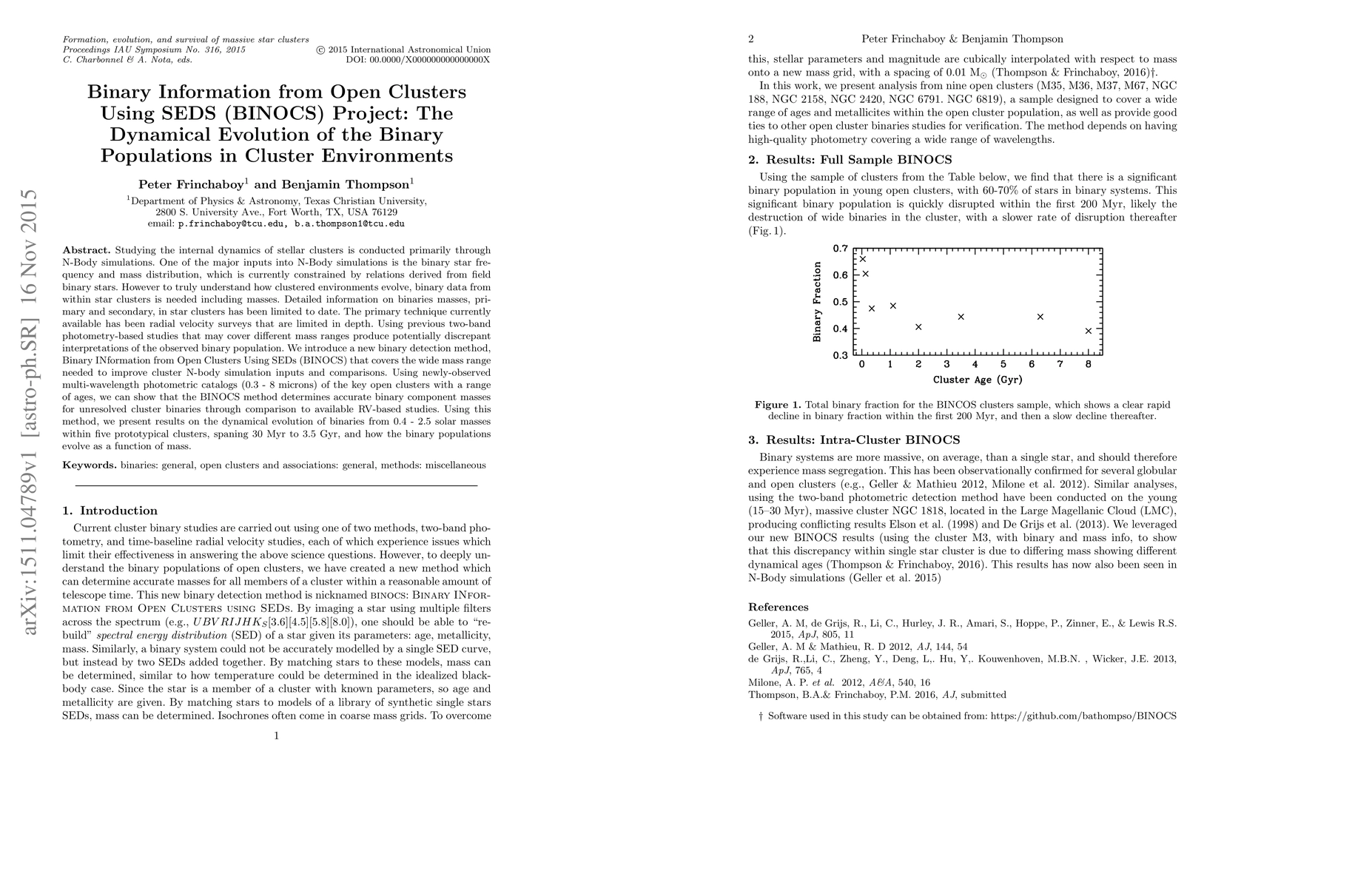 The BINOCS project introduces a new method to detect binary stars in open clusters using multi-wavelength photometry, providing accurate mass measurements for unresolved binaries. This method enhances N-Body simulation inputs by offering detailed binary mass data across a wide range, improving our understanding of the dynamical evolution of binary populations in cluster environments.