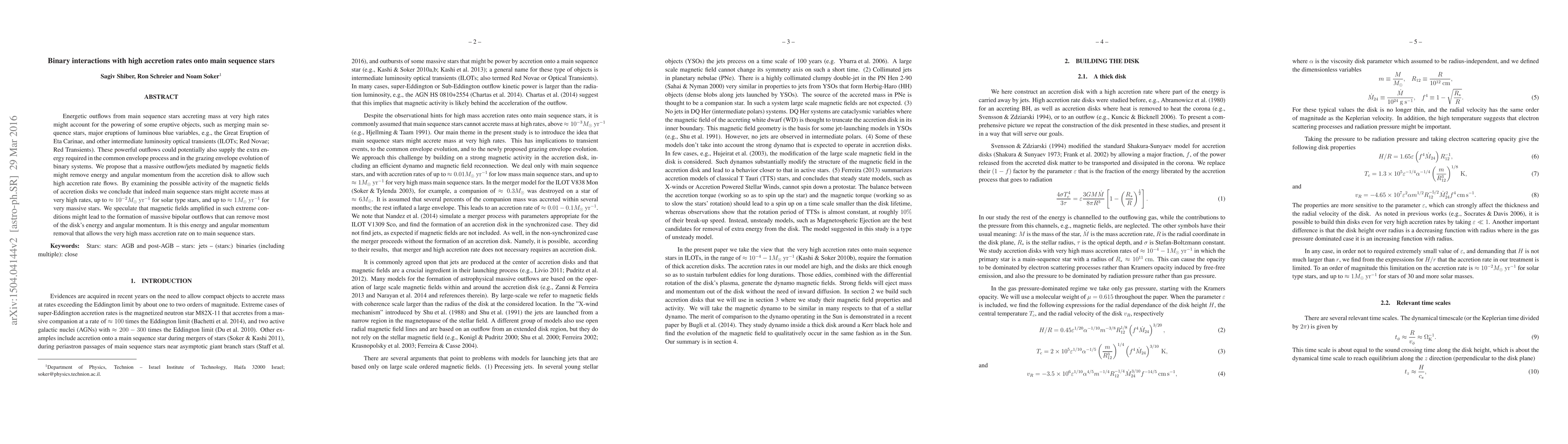 This paper explores how energetic outflows from main sequence stars with high accretion rates could drive phenomena such as eruptive objects and the common envelope process in binary systems. It proposes that magnetic fields amplify to create massive bipolar outflows, facilitating the removal of energy and angular momentum, thus enabling high accretion rates.
