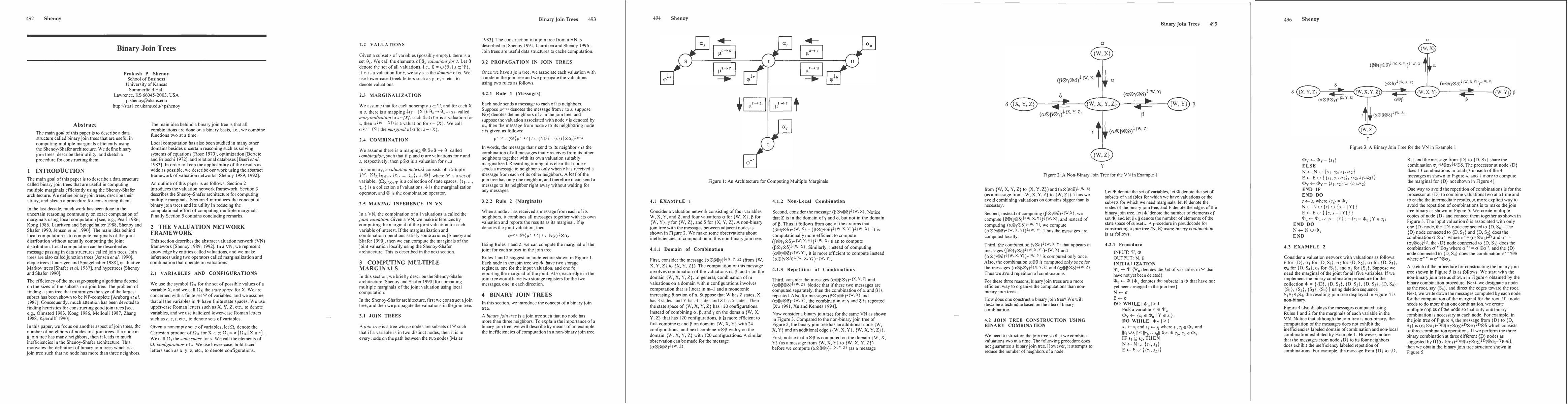 The main goal of this paper is to describe a data structure called binary join trees that are useful in computing multiple marginals efficiently using the Shenoy-Shafer architecture. We define binary join trees, describe their utility, and sketch a procedure for constructing them.