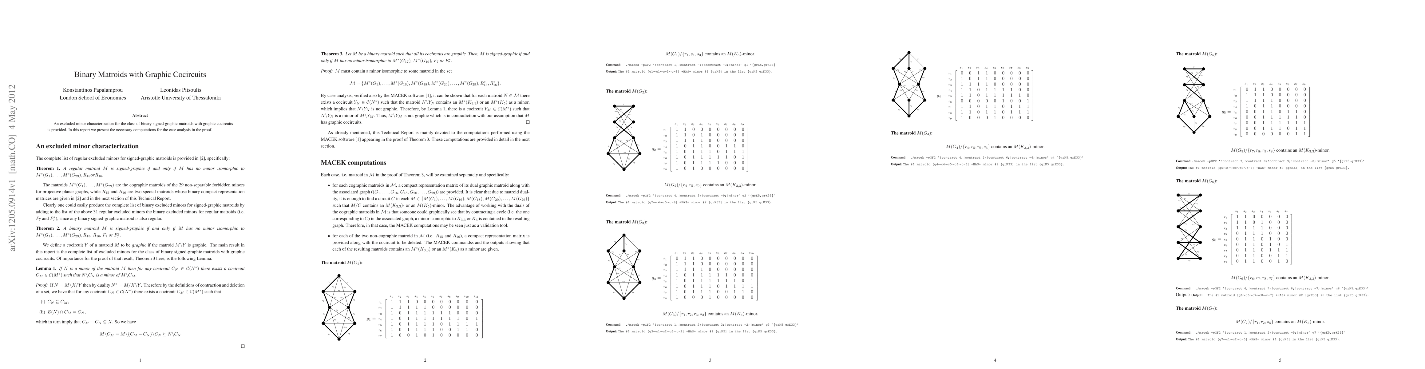 This paper presents an excluded minor characterization for binary signed-graphic matroids featuring graphic cocircuits, providing the essential computational case analysis needed to support the proof.