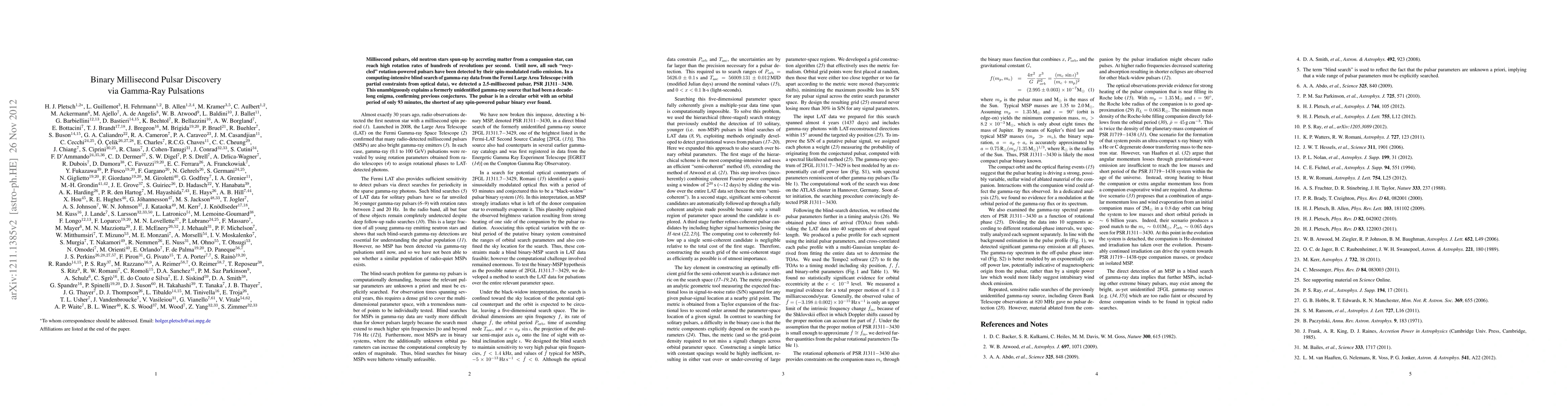 Researchers discovered a 2.5-millisecond pulsar, PSR J1311-3430, via gamma-ray pulsations, marking the first detection outside of radio emissions. This pulsar is in a binary system with the shortest orbital period of 93 minutes, solving a decade-long mystery of an unidentified gamma-ray source.