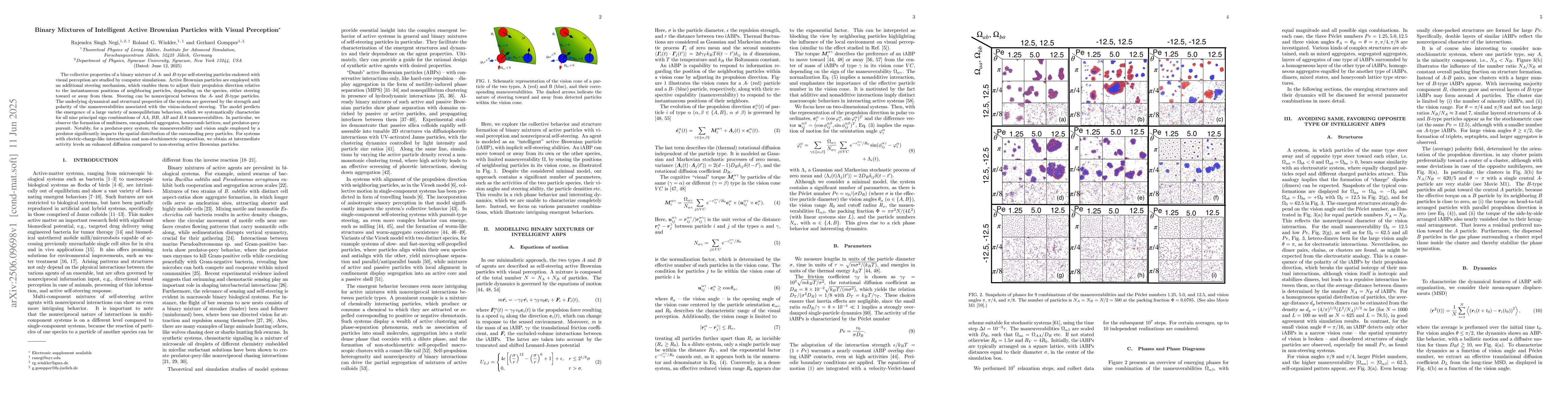 The paper introduces a minimal cognitive model for binary mixtures of self-steering active particles, incorporating vision-induced steering and non-reciprocal interactions.