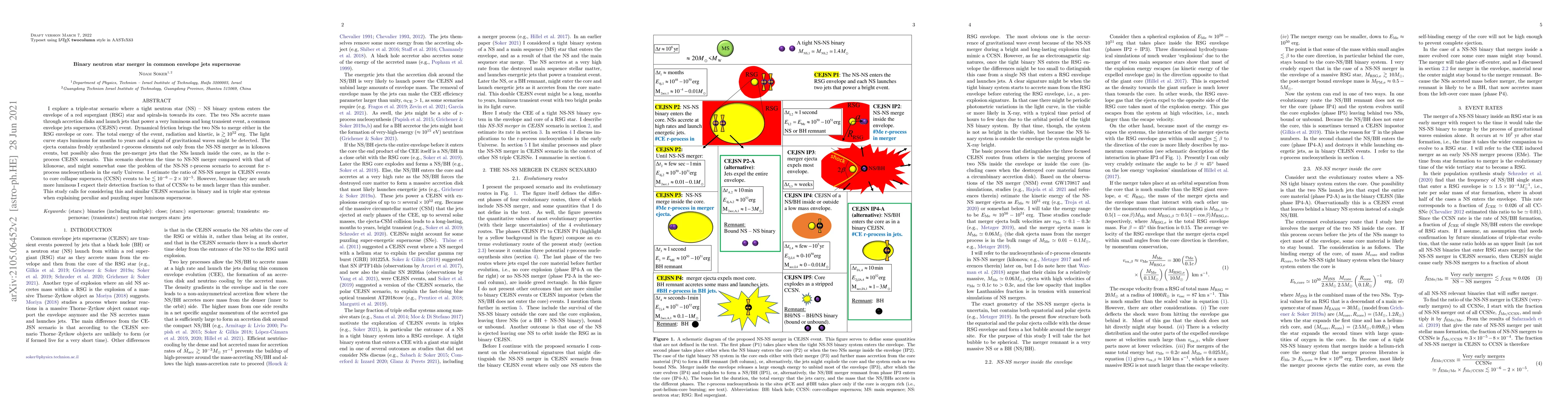 This paper investigates a triple-star system where a neutron star binary merges within a red supergiant star, resulting in a luminous transient event known as a common envelope jets supernova (CEJSN). The study estimates the ratio of such events to core collapse supernovae and suggests they could explain some of the most luminous supernovae, despite being rare.
