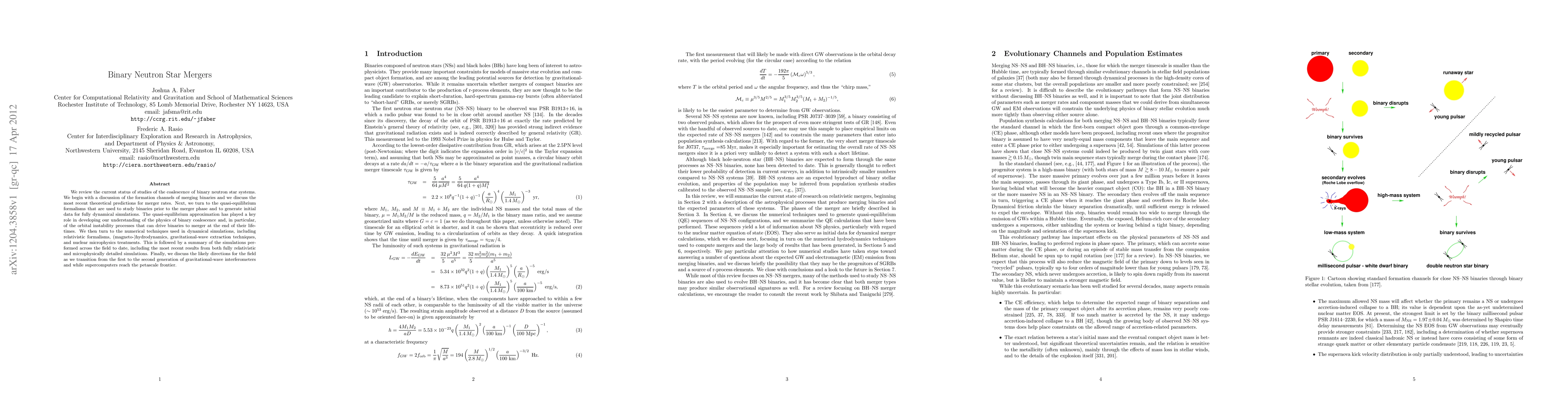 We review the current status of studies of the coalescence of binary neutron star systems. We begin with a discussion of the formation channels of merging binaries and we discuss the most recent theoretical predictions for merger rates. Next, we turn to the quasi-equilibrium formalisms that are used to study binaries prior to the merger phase and to generate initial data for fully dynamical simulations. The quasi-equilibrium approximation has played a key role in developing our understanding of the physics of binary coalescence and, in particular, of the orbital instability processes that can drive binaries to merger at the end of their lifetimes. We then turn to the numerical techniques used in dynamical simulations, including relativistic formalisms, (magneto-)hydrodynamics, gravitational-wave extraction techniques, and nuclear microphysics treatments. This is followed by a summary of the simulations performed across the field to date, including the most recent results from both fully relativistic and microphysically detailed simulations. Finally, we discuss the likely directions for the field as we transition from the first to the second generation of gravitational-wave interferometers and while supercomputers reach the petascale frontier.