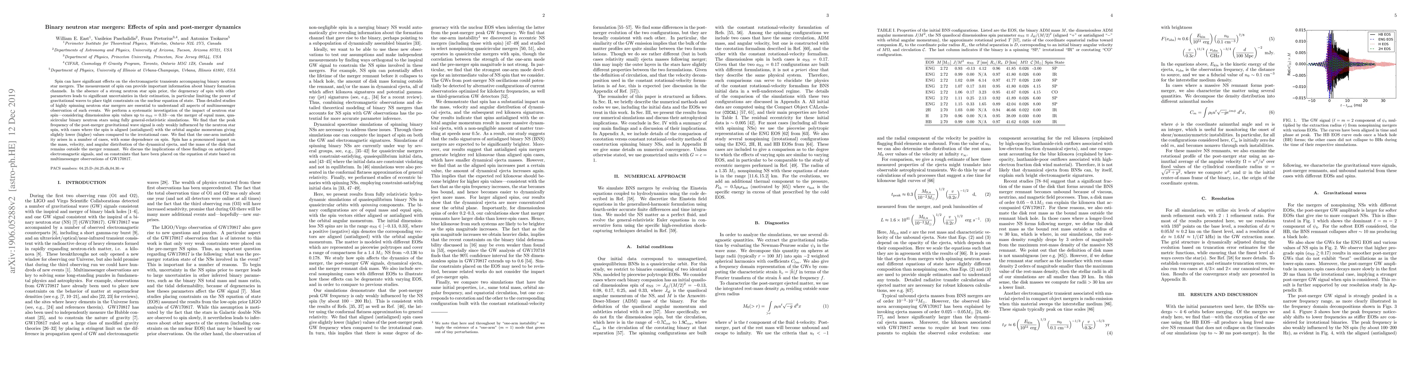 This paper investigates the impact of neutron star spin on binary neutron star mergers, finding that spin significantly affects the mass, velocity, and angular distribution of ejected material and the remnant disk, but has a minor influence on the peak frequency of post-merger gravitational waves. The study highlights the importance of spin measurements for understanding multimessenger observations and constraining the nuclear equation of state.