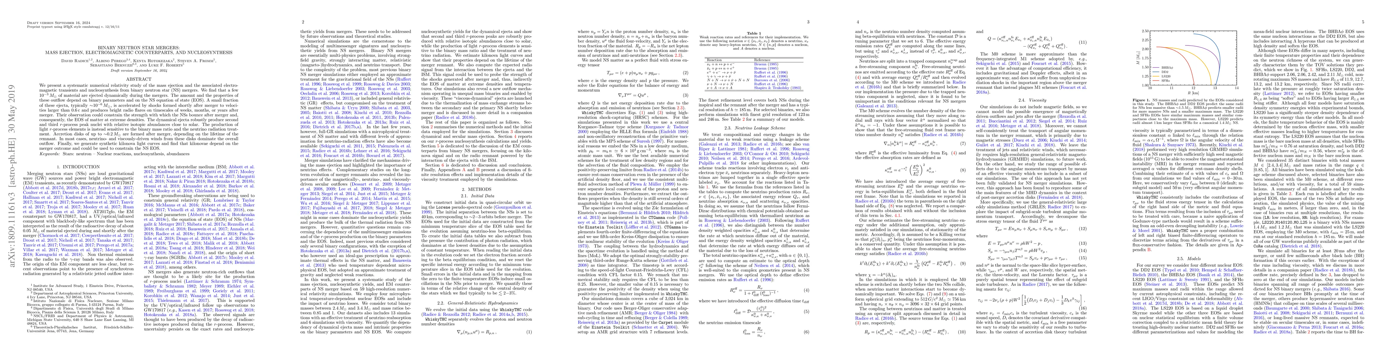 This study systematically investigates mass ejection and electromagnetic counterparts from binary neutron star mergers using numerical relativity. It finds that a few $10^{-3}\, M_\odot$ of material is ejected, with a small fraction producing bright radio flares, while dynamical ejecta produce $r$-process nuclei, and accretion disks contribute to the overall outflow.