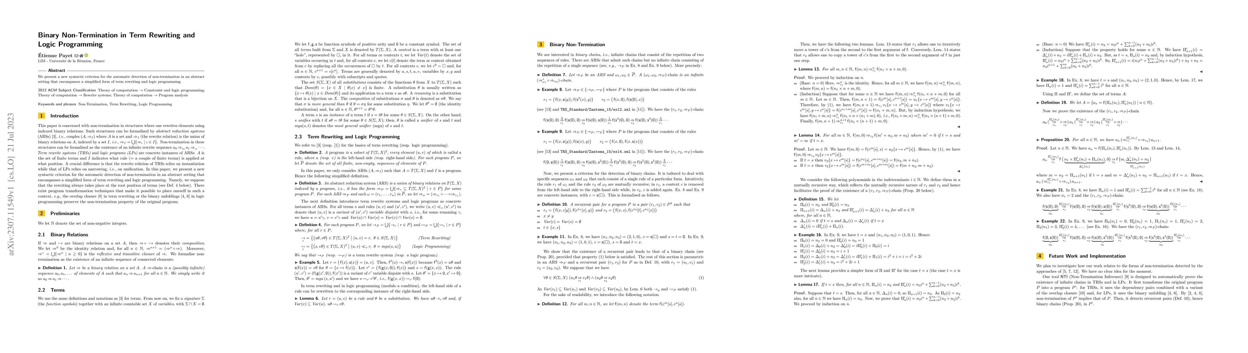 Summary: This paper introduces a novel syntactic criterion for automatically identifying non-termination in simplified term rewriting and logic programming systems. The proposed method aims to enhance the analysis of these computational models.