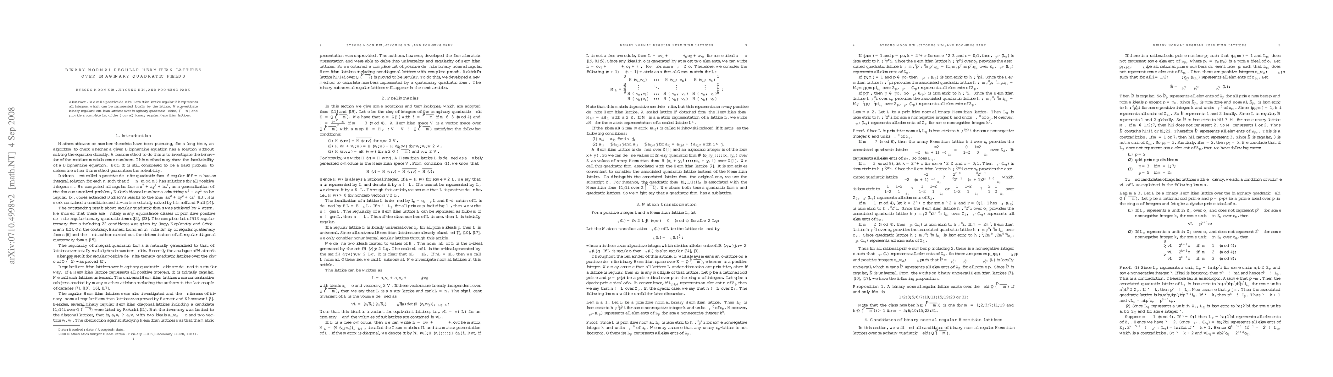 The paper investigates binary normal regular Hermitian lattices over imaginary quadratic fields, providing a complete list of normal Hermitian lattices for these fields.