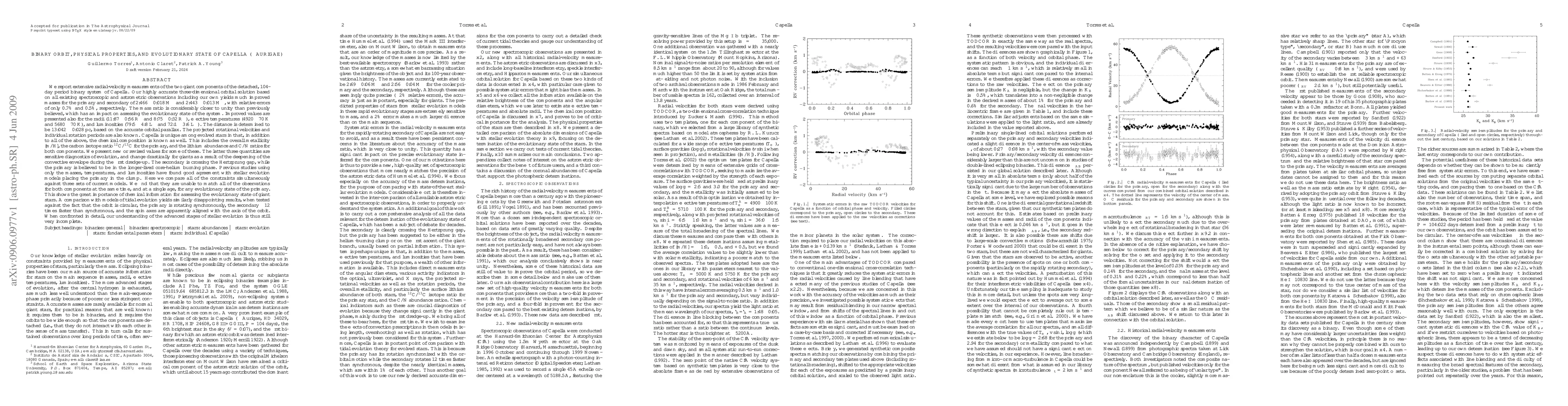 We report extensive radial-velocity measurements of the two giant components of the detached, 104-day period binary system of Capella. Our highly accurate three-dimensional orbital solution based on all existing spectroscopic and astrometric observations including our own yields much improved masses of 2.466 +/- 0.018 M_Sun and 2.443 +/- 0.013 M_Sun for the primary and secondary (relative errors of 0.7% and 0.5%). Improved values are derived also for the radii (11.87 +/- 0.56 R_Sun and 8.75 +/- 0.32 R_Sun), effective temperatures (4920 +/- 70 K and 5680 +/- 70 K), and luminosities (79.5 +/- 4.8 L_Sun and 72.1 +/- 3.6 L_Sun). The distance is determined to be 13.042 +/- 0.028 pc. Capella is unique among evolved stars in that, in addition to all of the above, the chemical composition is known, including the overall metallicity [m/H], the carbon isotope ratio 12C/13C for the primary, and the lithium abundance and C/N ratios for both components. The latter three quantities are sensitive diagnostics of evolution, and change drastically for giants as a result of the deepening of the convective envelope during the first dredge-up. The secondary is crossing the Hertzprung gap, while the primary is believed to be in the longer-lived core-helium burning phase. However, we find that current stellar evolution models are unable to match all of the observations for both components at the same time, and at a single age, for any evolutionary state of the primary. Similar problems are found when testing the rotational synchronization, spin axis alignment, and orbital circularization of the system against tidal theory. We conclude that our understanding of the advanced stages of stellar evolution is still very incomplete. [Abridged]