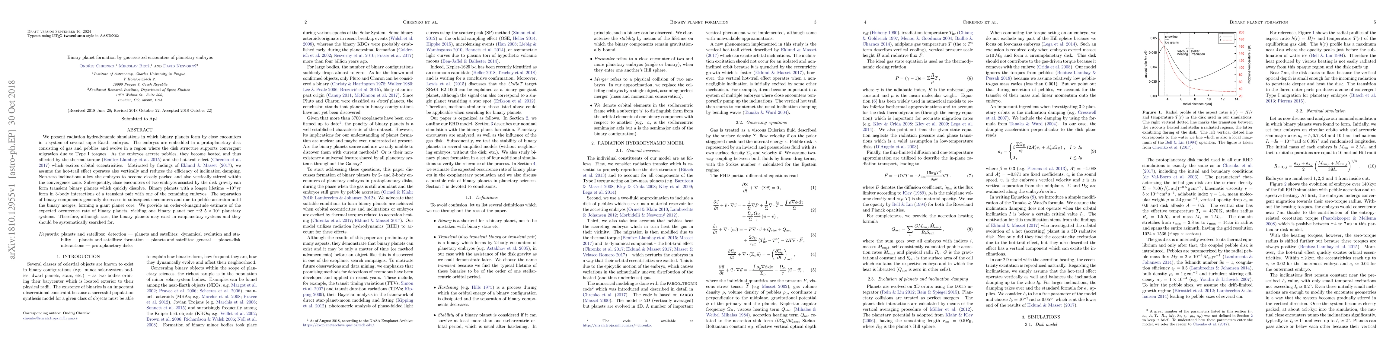 Binary planets form through gas-assisted encounters of planetary embryos in a disk, with some forming long-lived binary systems after multiple close interactions.