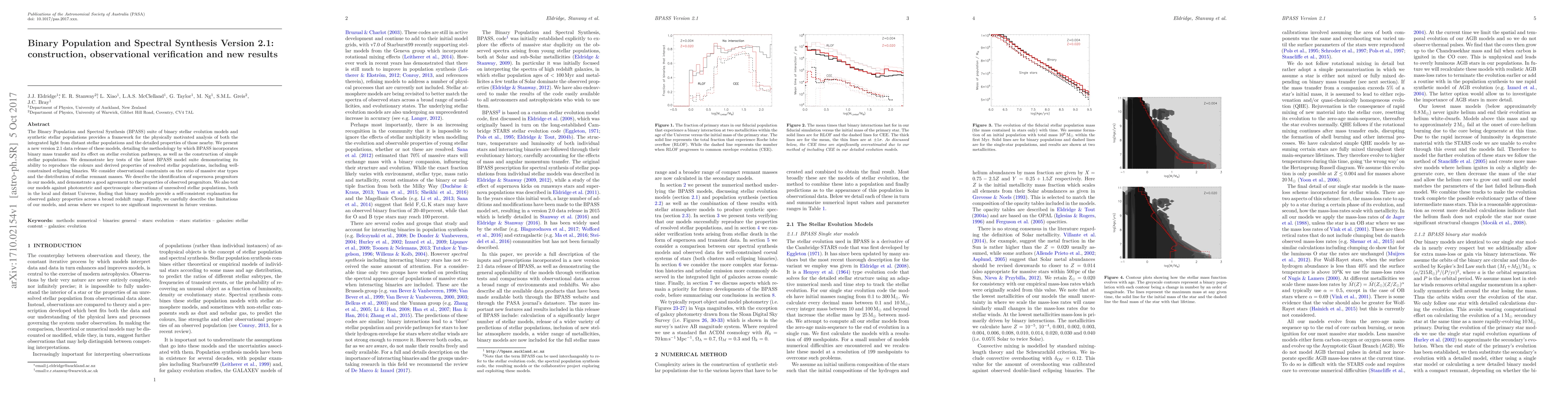 The BPASS v2.1 models incorporate binary mass transfer and synthetic stellar populations, demonstrating their ability to reproduce the properties of resolved stellar populations and match observed galaxy characteristics across redshifts. The models show good agreement with observational constraints on stellar remnants and supernova progenitors, though limitations are acknowledged for future improvements.