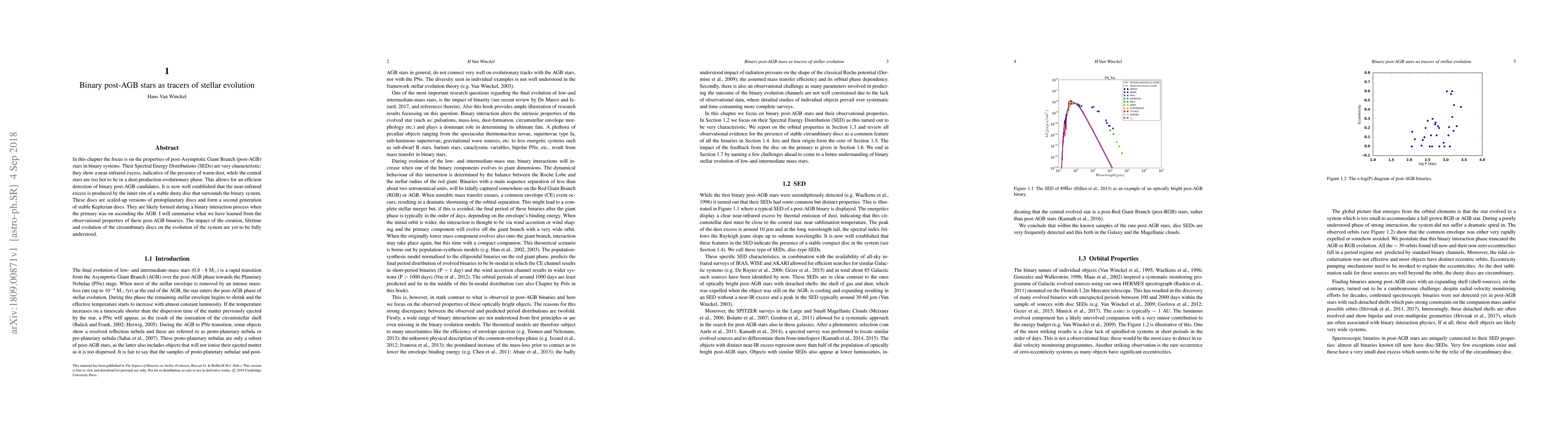 In this chapter the focus is on the properties of post-Asymptotic Giant Branch (post-AGB) stars in binary systems. Their Spectral Energy Distributions (SEDs) are very characteristic: they show a near-infrared excess, indicative of the presence of warm dust, while the central stars are too hot to be in a dust-production evolutionary phase. This allows for an efficient detection of binary post-AGB candidates. It is now well established that the near-infrared excess is produced by the inner rim of a stable dusty disc that surrounds the binary system. These discs are scaled-up versions of protoplanetary discs and form a second generation of stable Keplerian discs. They are likely formed during a binary interaction process when the primary was on ascending the AGB. I will summarise what we have learned from the observational properties of these post-AGB binaries. The impact of the creation, lifetime and evolution of the circumbinary discs on the evolution of the system are yet to be fully understood.