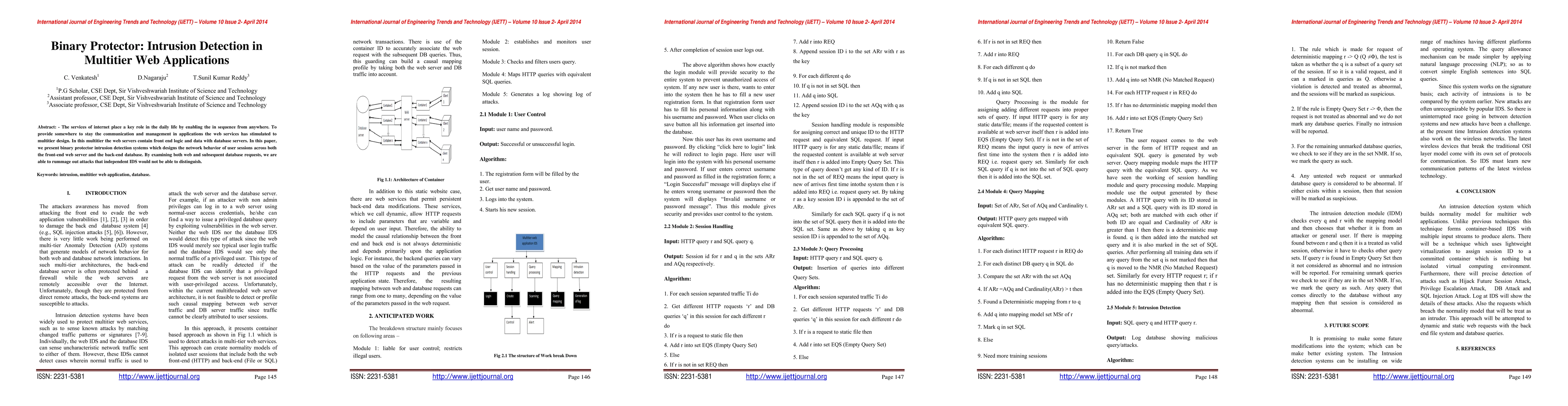 This paper introduces a binary protector intrusion detection system for multitier web applications that monitors network behavior across web and database servers to detect attacks that traditional intrusion detection systems might miss. The system analyzes both web and database requests to identify potential threats.