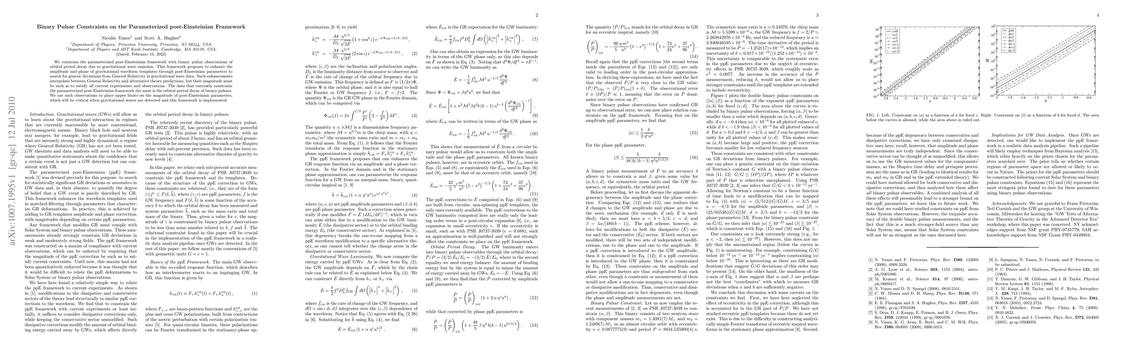 This paper uses binary pulsar observations to place constraints on the parameterized post-Einsteinian framework, which seeks deviations from General Relativity through enhanced gravitational waveforms. The study determines upper limits on post-Einsteinian parameters, which will be vital for future gravitational wave detections.