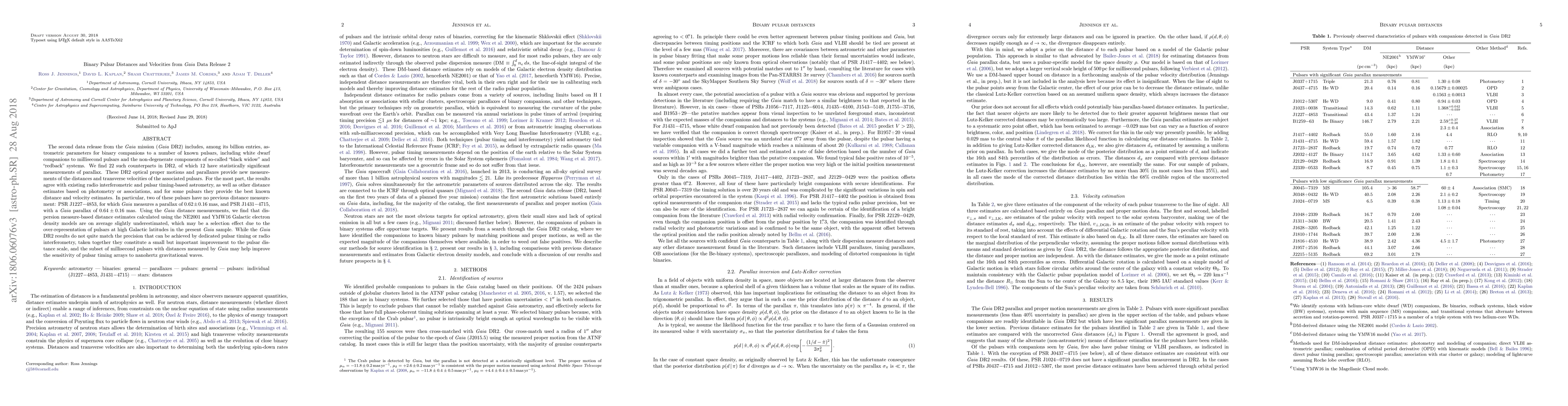 The Gaia DR2 data provides new parallax and proper motion measurements for binary companions of pulsars, yielding improved distance and velocity estimates for 12 pulsars, including two previously unmeasured distances. These results generally agree with existing methods, contributing to the pulsar distance scale and potentially aiding in gravitational wave detection.